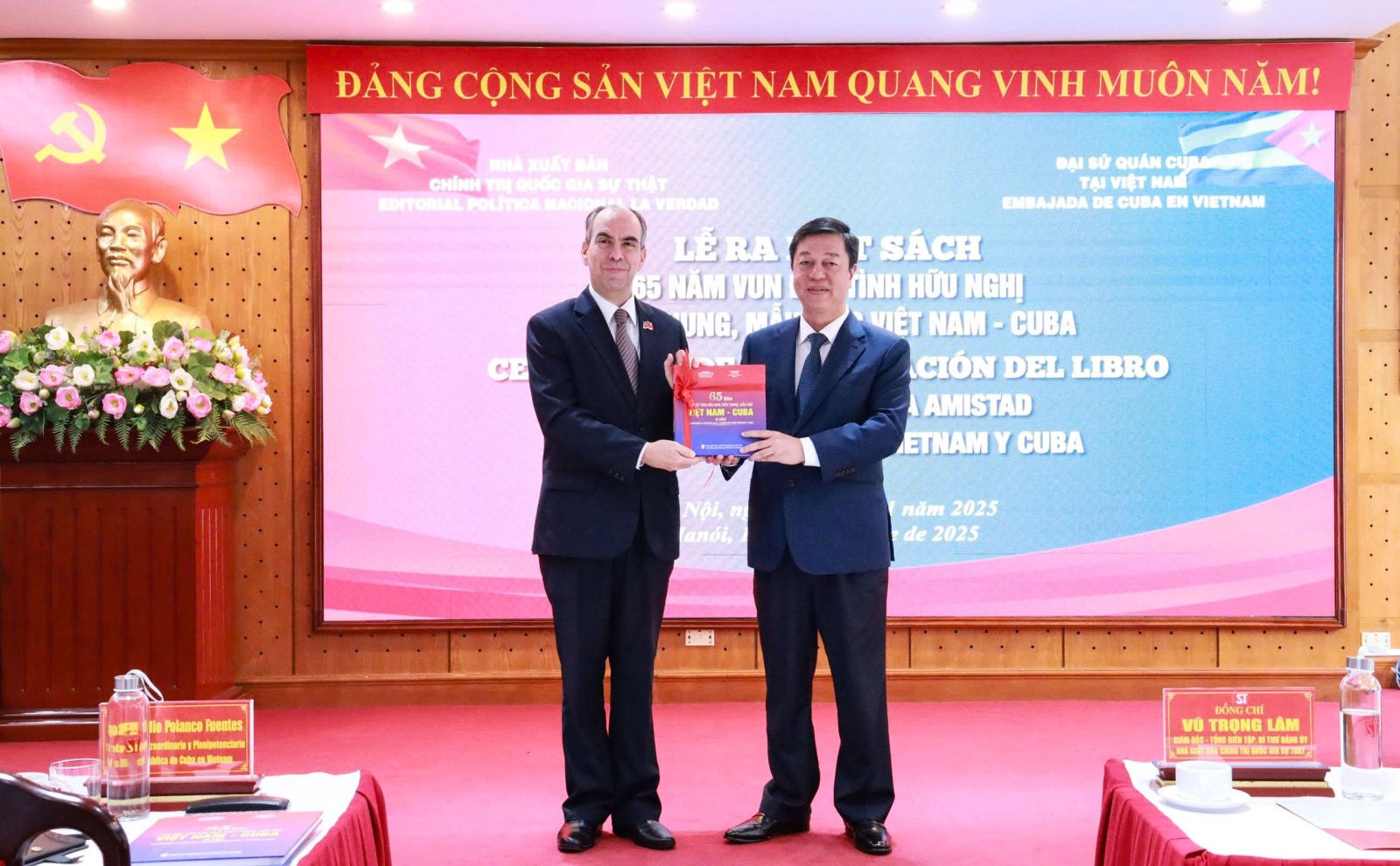 Ngày 12/11/2025, tại Hà Nội, Nhà xuất bản Chính trị quốc gia Sự thật phối hợp với Đại sứ quán Cuba tại Việt Nam tổ chức Lễ ra mắt cuốn sách 65 năm vun đắp tình hữu nghị thủy chung, mẫu mực Việt Nam - Cuba. Đây là một ấn phẩm quan trọng, phản ánh sâu sắc mối quan hệ hữu nghị đặc biệt, thủy chung, trong sáng và hiếm có trong quan hệ quốc tế - một biểu tượng của thời đại và là tài sản vô giá của hai Đảng và nhân dân hai nước.