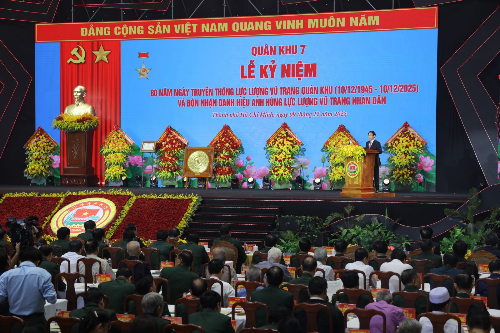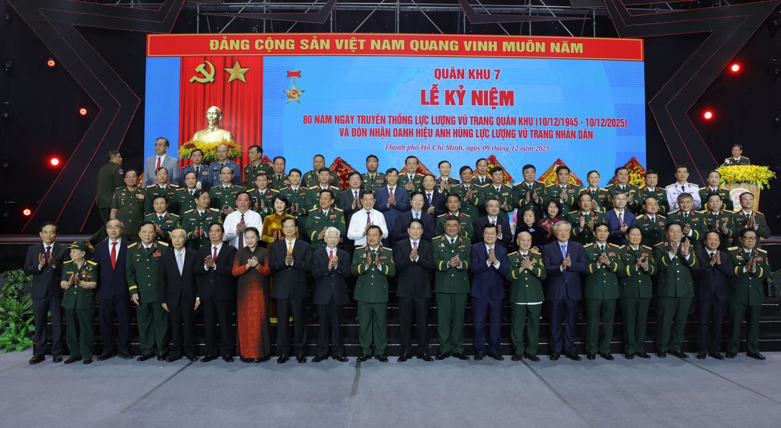 Sáng 9/12, tại Thành phố Hồ Chí Minh, Đảng ủy - Bộ Tư lệnh Quân khu 7 long trọng tổ chức Lễ kỷ niệm 80 năm Ngày truyền thống Lực lượng vũ trang Quân khu 7 (10/12/1945 - 10/12/2025) và đón nhận danh hiệu Anh hùng Lực lượng vũ trang nhân dân.