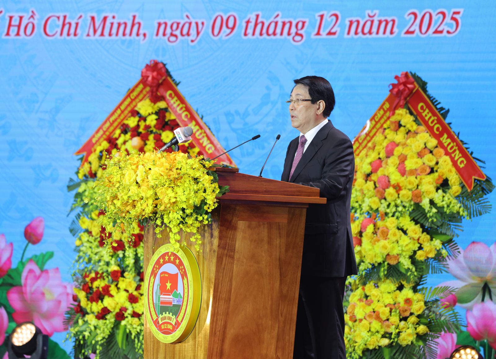 Phát biểu tại buổi lễ, Chủ tịch nước Lương Cường nêu rõ, trải qua 80 năm, chiến đấu, xây dựng và trưởng thành; dưới sự lãnh đạo, chỉ đạo của Trung ương Đảng, thường xuyên, trực tiếp là Quân ủy Trung ương, Bộ Quốc phòng; sự ủng hộ, phối hợp, giúp đỡ của cấp ủy, chính quyền các địa phương; sự thương yêu, đùm bọc của nhân dân, các thế hệ cán bộ, chiến sĩ Lực lượng vũ trang Quân khu 7 đã kế thừa, giữ vững và phát huy truyền thống anh hùng, bất khuất trong lịch sử dựng nước và giữ nước của dân tộc Việt Nam; truyền thống oanh liệt, hào hùng của vùng đất miền Đông Nam Bộ gian lao mà anh dũng. Lực lượng vũ trang Quân khu 7 tuyệt đối trung thành với Đảng, với Tổ quốc, gắn bó máu thịt với nhân dân, đoàn kết, nỗ lực vượt qua mọi khó khăn, thử thách, anh dũng chiến đấu, lập được nhiều chiến công xuất sắc, đóng góp to lớn cùng toàn Đảng, toàn dân, toàn quân giành được những thắng lợi vĩ đại trong sự nghiệp đấu tranh giải phóng dân tộc, thống nhất đất nước, cũng như trong công cuộc xây dựng, bảo vệ Tổ quốc Việt Nam xã hội chủ nghĩa và làm tròn nghĩa vụ quốc tế vẻ vang.