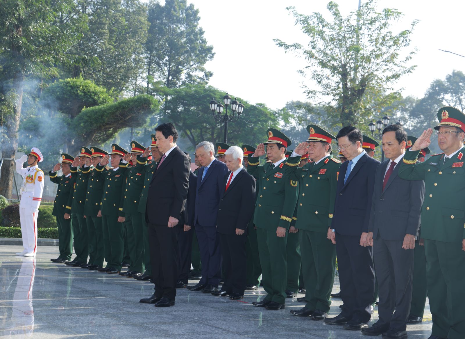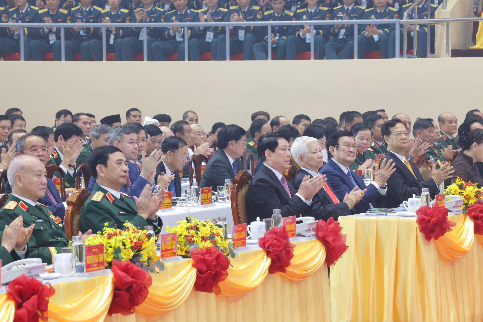 Cùng dự lễ kỷ niệm có các đồng chí nguyên Chủ tịch nước: Nguyễn Minh Triết, Trương Tấn Sang; nguyên Thủ tướng Chính phủ Nguyễn Tấn Dũng; nguyên Chủ tịch Quốc hội Nguyễn Thị Kim Ngân; nguyên Thường trực Ban Bí thư Lê Hồng Anh; các Ủy viên Bộ Chính trị: Phó Thủ tướng Thường trực Nguyễn Hòa Bình; Bộ trưởng Quốc phòng, Đại tướng Phan Văn Giang; Bí thư Trung ương Đảng, Chủ nhiệm Tổng cục Chính trị Quân đội nhân dân Việt Nam, Đại tướng Nguyễn Trọng Nghĩa.