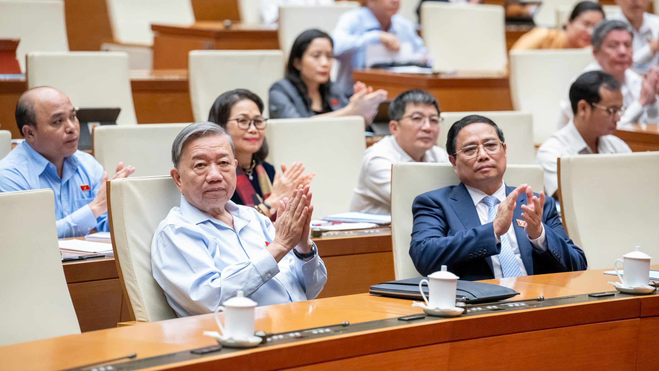 Tổng Bí thư Tô Lâm, Thủ tướng Chính phủ Phạm Minh Chính và các ĐBQH tại phiên chất vấn và trả lời chất vấn.