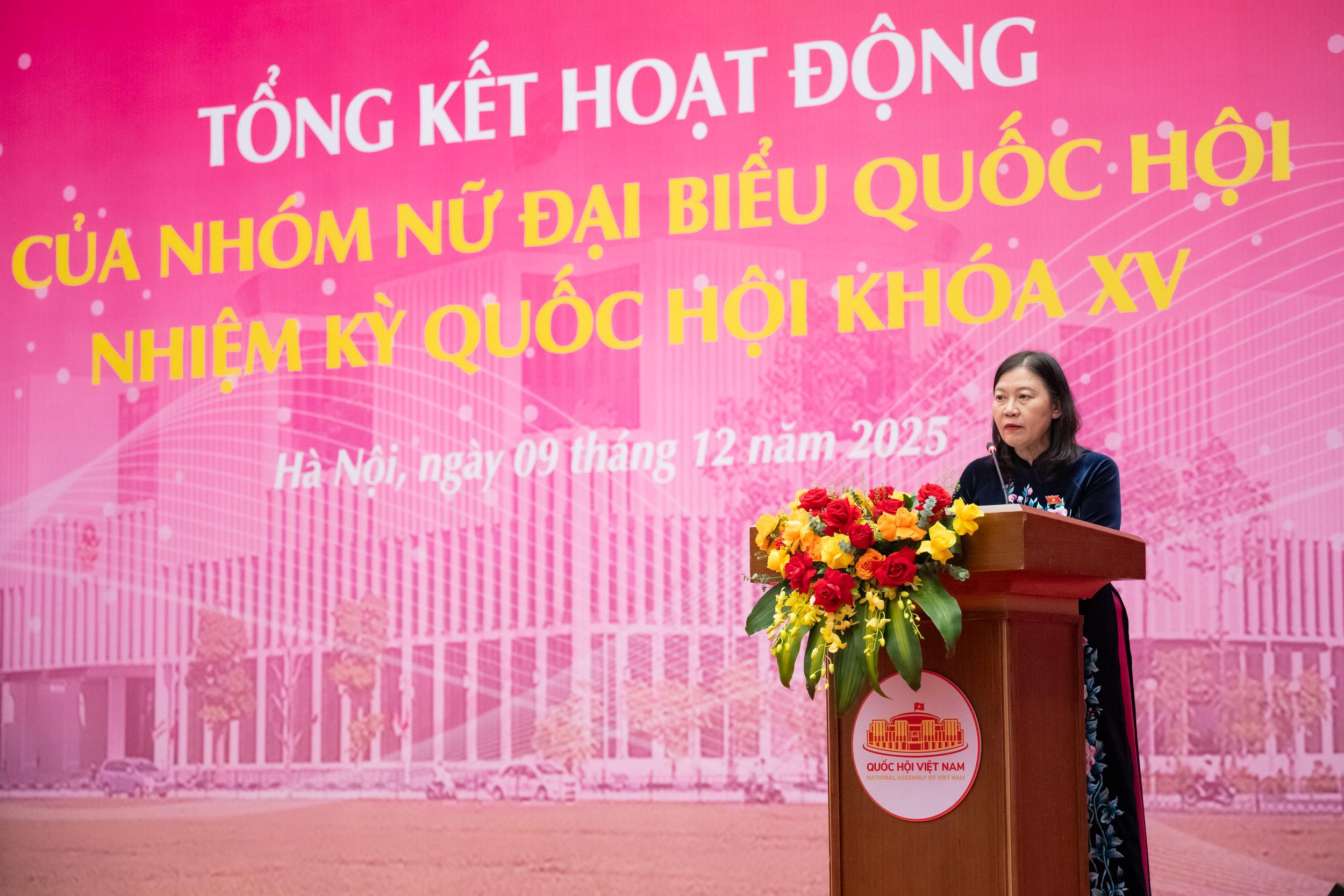 “Chúng ta xúc động tưởng nhớ đến cố Tổng Bí thư, Chủ tịch Quốc hội khóa XII Nguyễn Phú Trọng - người đã thay mặt Ủy ban Thường vụ Quốc hội ký quyết định thành lập Nhóm nữ nghị sĩ Việt Nam, ngày 15/5/2008. Trong cuộc gặp mặt nhân dịp 15 năm thành lập Nhóm nữ đại biểu Quốc hội Việt Nam, thay mặt các nữ đại biểu Quốc hội, chúng ta đã hứa với Tổng Bí thư sẽ nỗ lực rèn luyện, phấn đấu, cống hiến, để xứng đáng với niềm tin của Đảng, Nhà nước và cử tri. Hôm nay, trong thời khắc tổng kết nhiệm kỳ, chúng ta có quyền tự hào báo cáo rằng lời hứa ấy đã được hiện thực hóa bằng những kết quả cụ thể, thiết thực và đầy dấu ấn”, Chủ tịch Nhóm nữ đại biểu Quốc hội Việt Nam khẳng định.