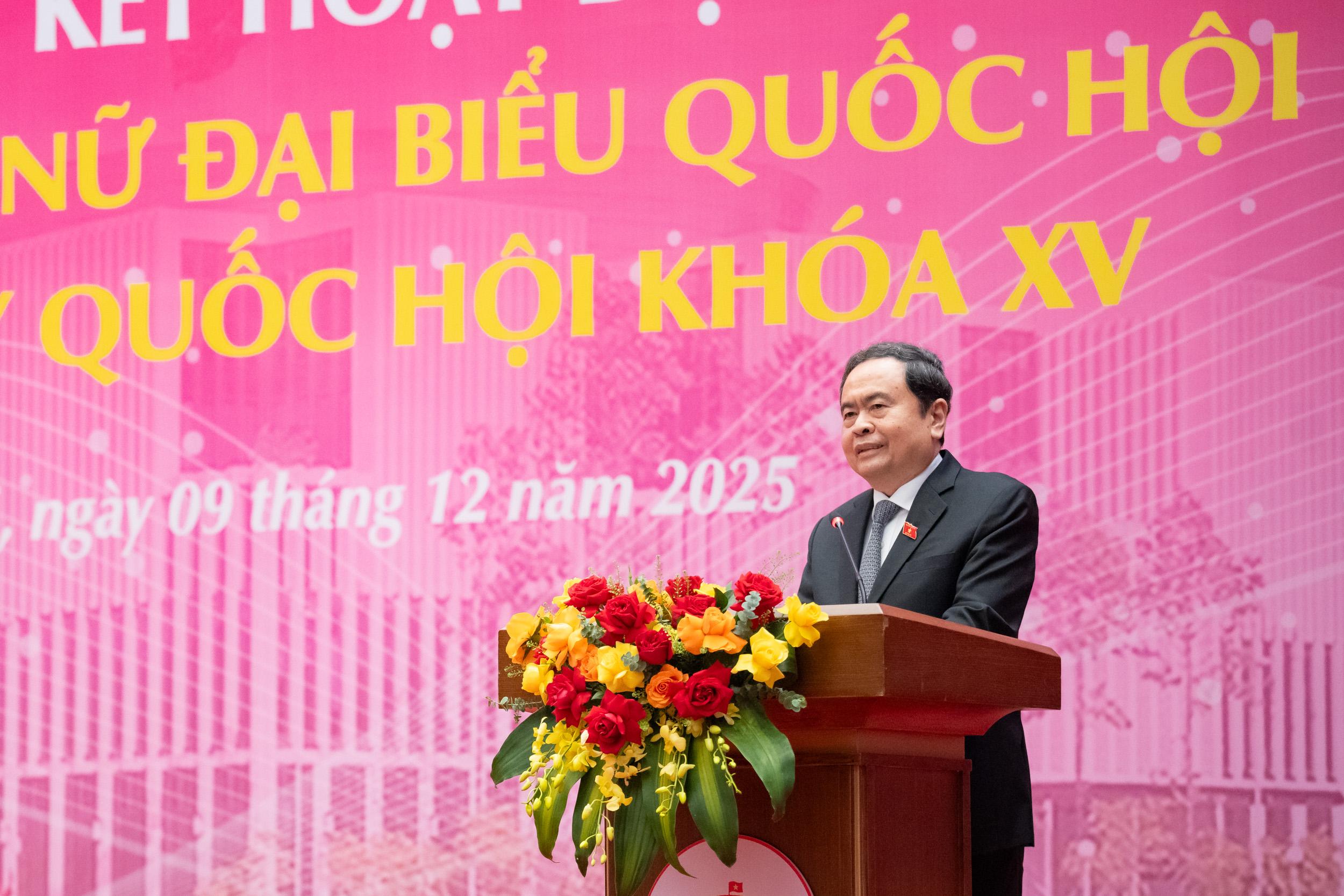 Chủ tịch Quốc hội Trần Thanh Mẫn phát biểu tại Lễ tổng kết hoạt động của Nhóm nữ đại biểu Quốc hội Việt Nam nhiệm kỳ Quốc hội khóa XV