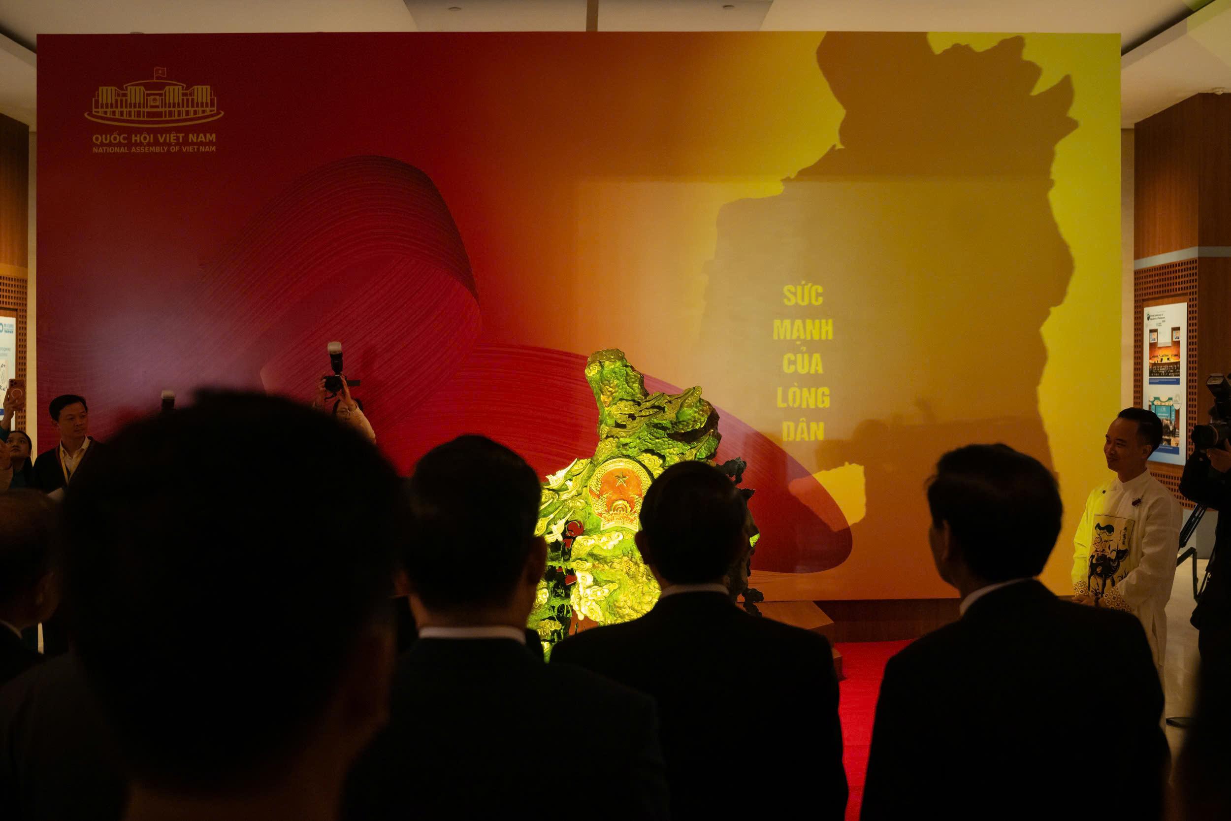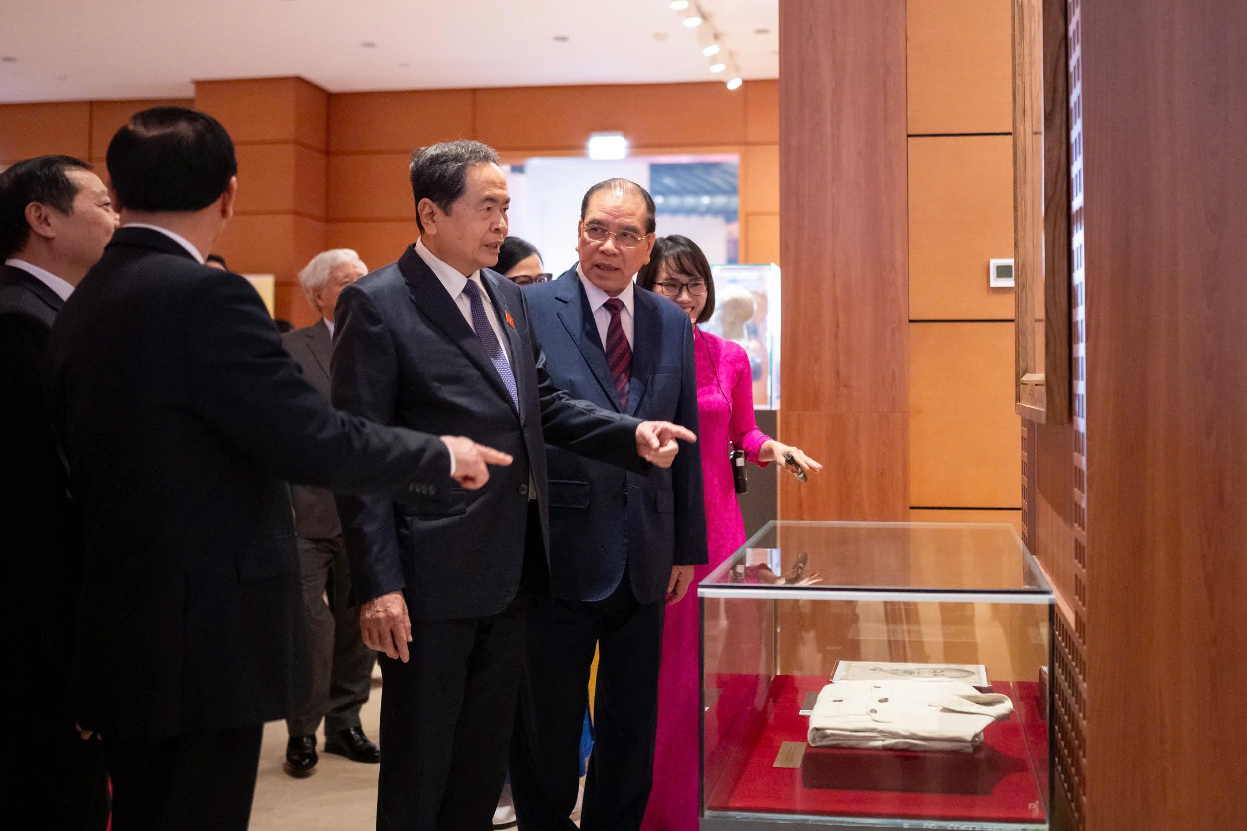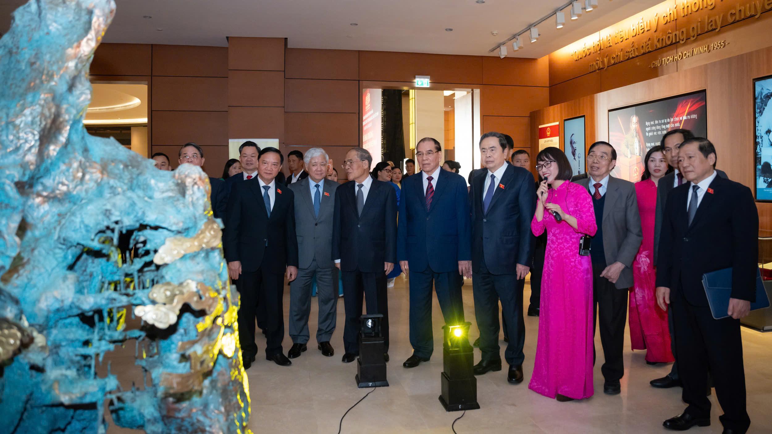 Chủ tịch Quốc hội ghi nhận, biểu dương sự nỗ lực, tinh thần trách nhiệm và những đóng góp rất lớn của các cơ quan, đơn vị, các nhà khoa học, chuyên gia và đội ngũ cán bộ, công chức đã trực tiếp tham gia, phối hợp chặt chẽ, số hóa hiện vật, hình ảnh và sưu tầm các sản vật trưng bày hôm nay.