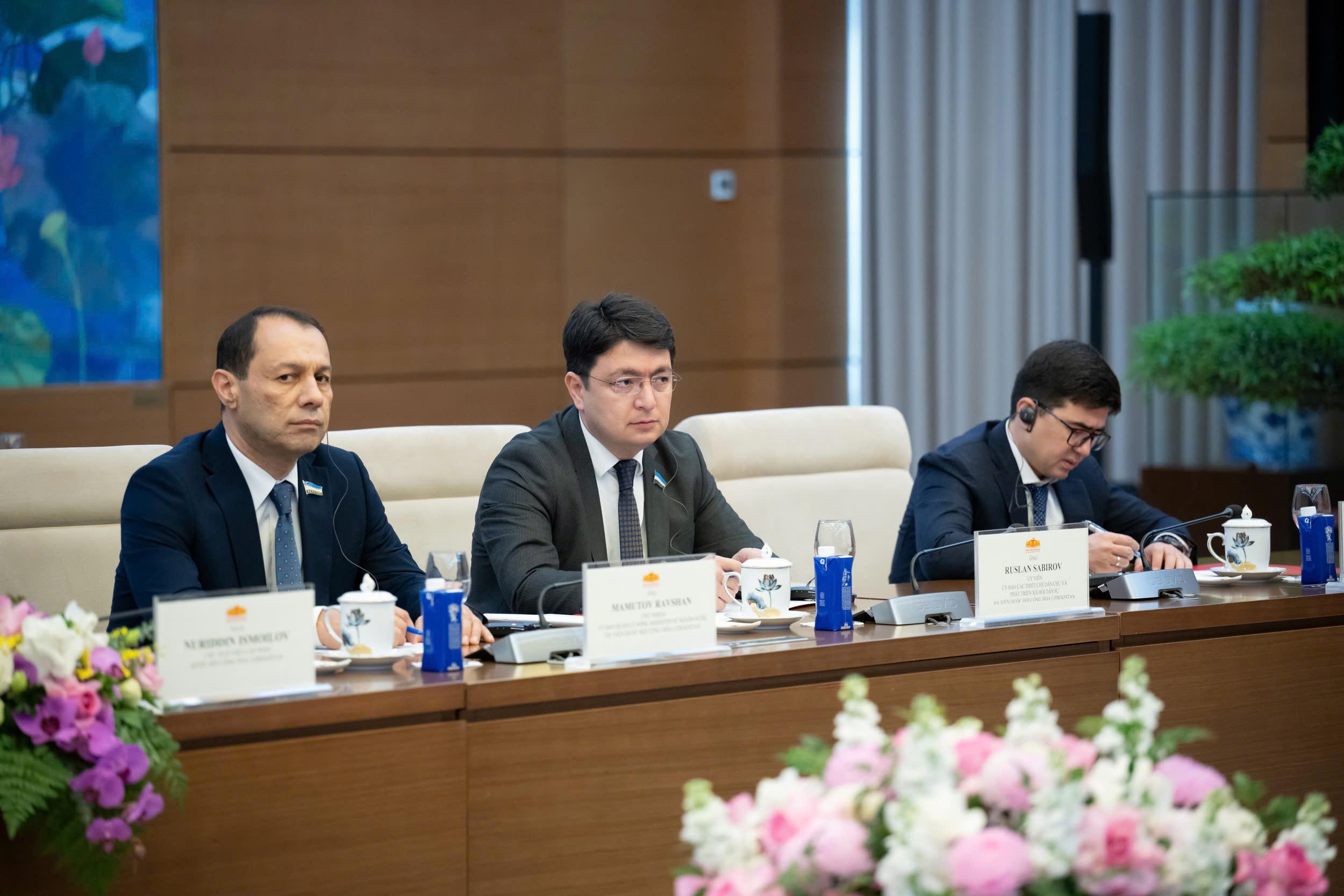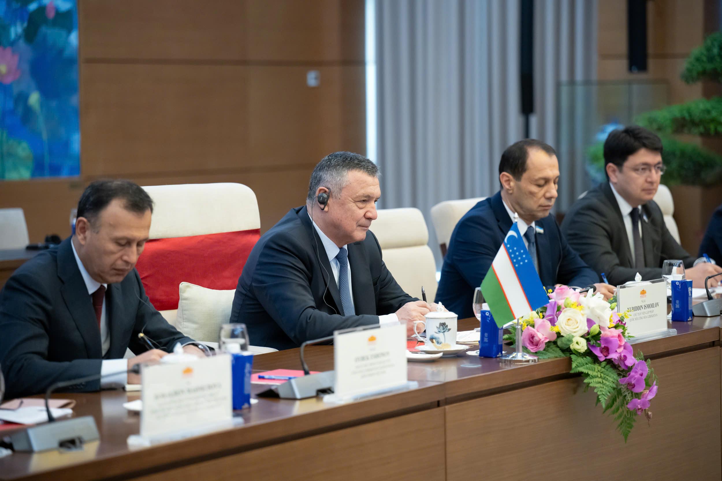 Chủ tịch Hạ viện Uzbekistan Nuriddin Ismoilov và các đại biểu trong Đoàn