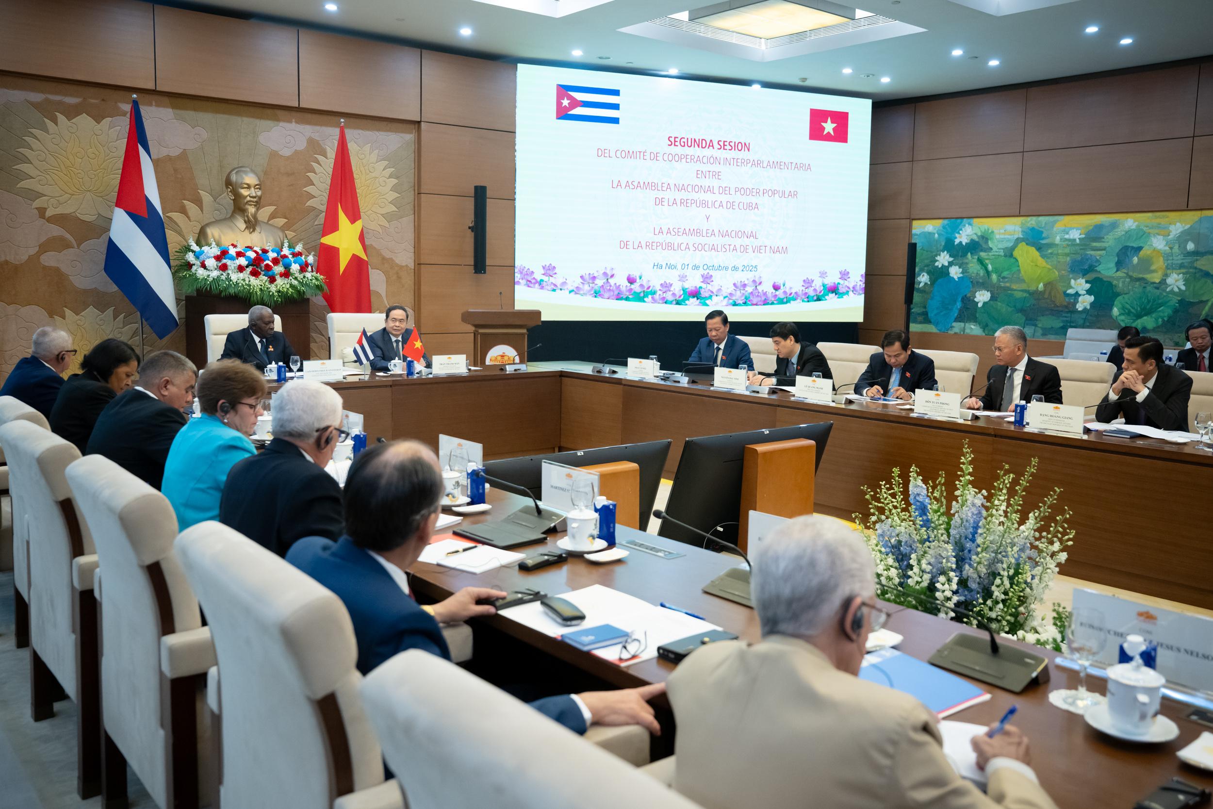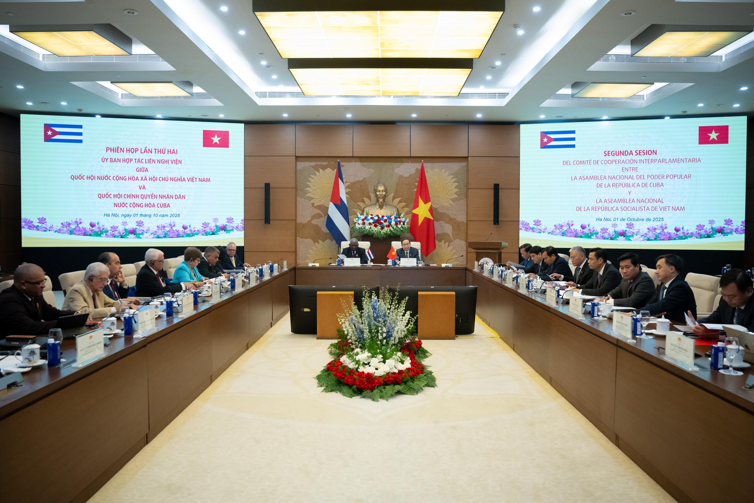 Sáng 1/10, tại Nhà Quốc hội, Chủ tịch Quốc hội Trần Thanh Mẫn và Chủ tịch Quốc hội Chính quyền nhân dân, Chủ tịch Hội đồng Nhà nước Cuba Esteban Lazo Hernández đã đồng chủ trì Phiên họp lần thứ hai Ủy ban hợp tác liên nghị viện Việt Nam-Cuba.