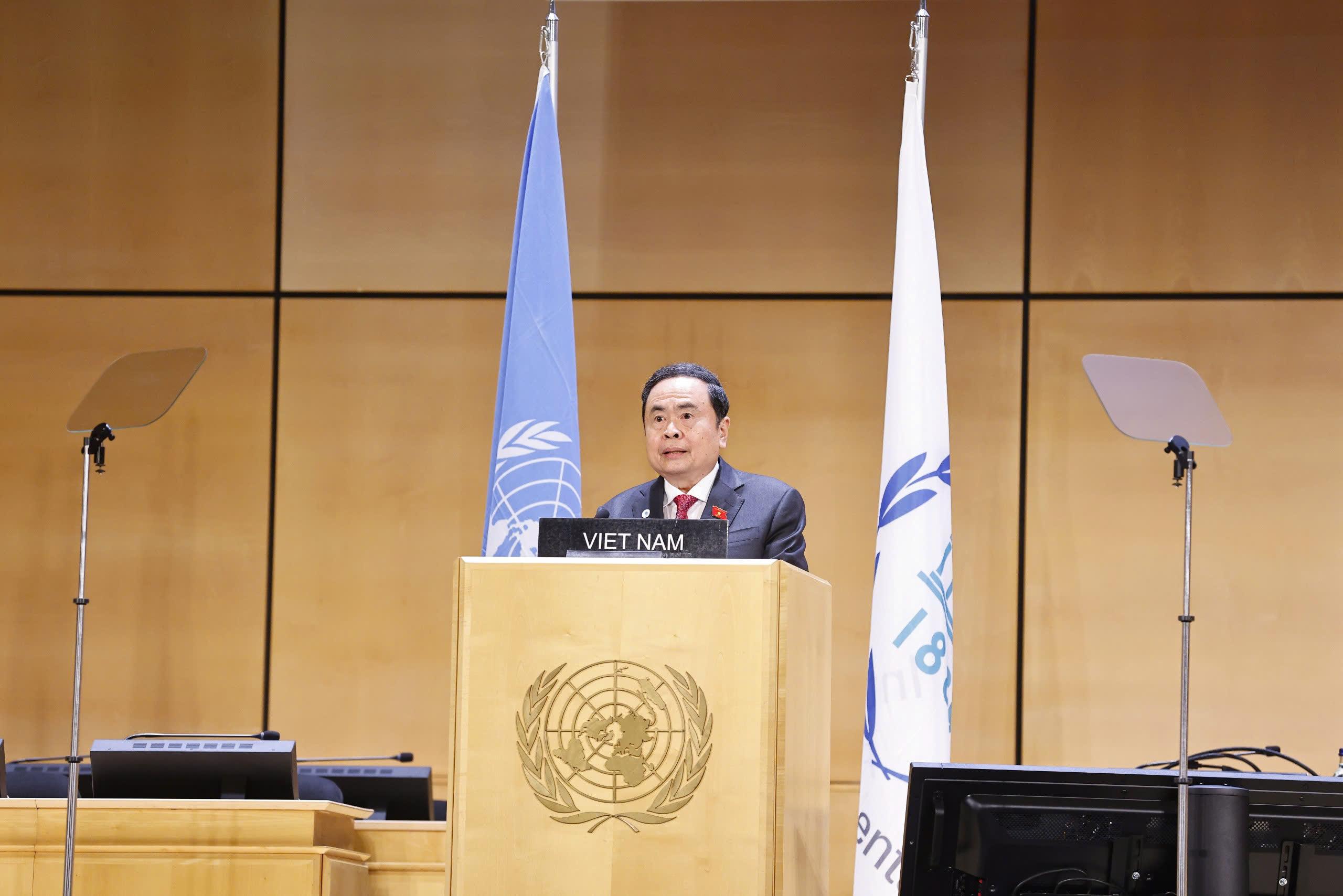 Chủ tịch Quốc hội Trần Thanh Mẫn phát biểu tại Phiên thảo luận chung của Hội nghị các Chủ tịch Quốc hội thế giới lần thứ 6