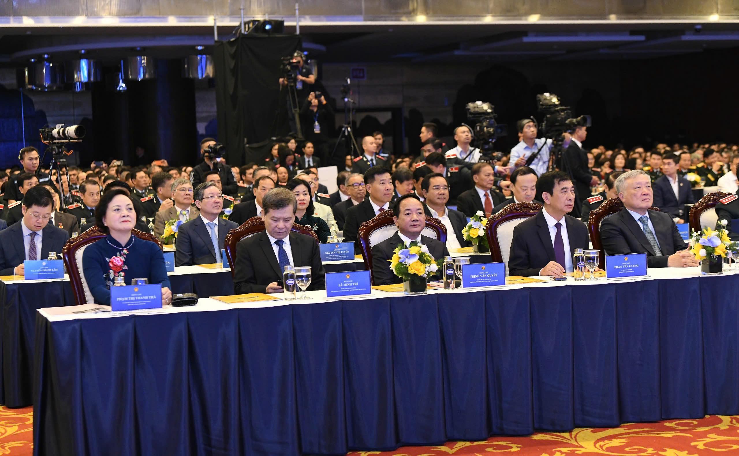 Tổng Bí thư Tô Lâm, Chủ tịch Quốc hội Trần Thanh Mẫn cùng các đồng chí lãnh đạo Đảng, Nhà nước dự Lễ kỷ niệm 80 năm Ngày truyền thống Thanh tra Việt Nam. (Ảnh: Lâm Hiển)