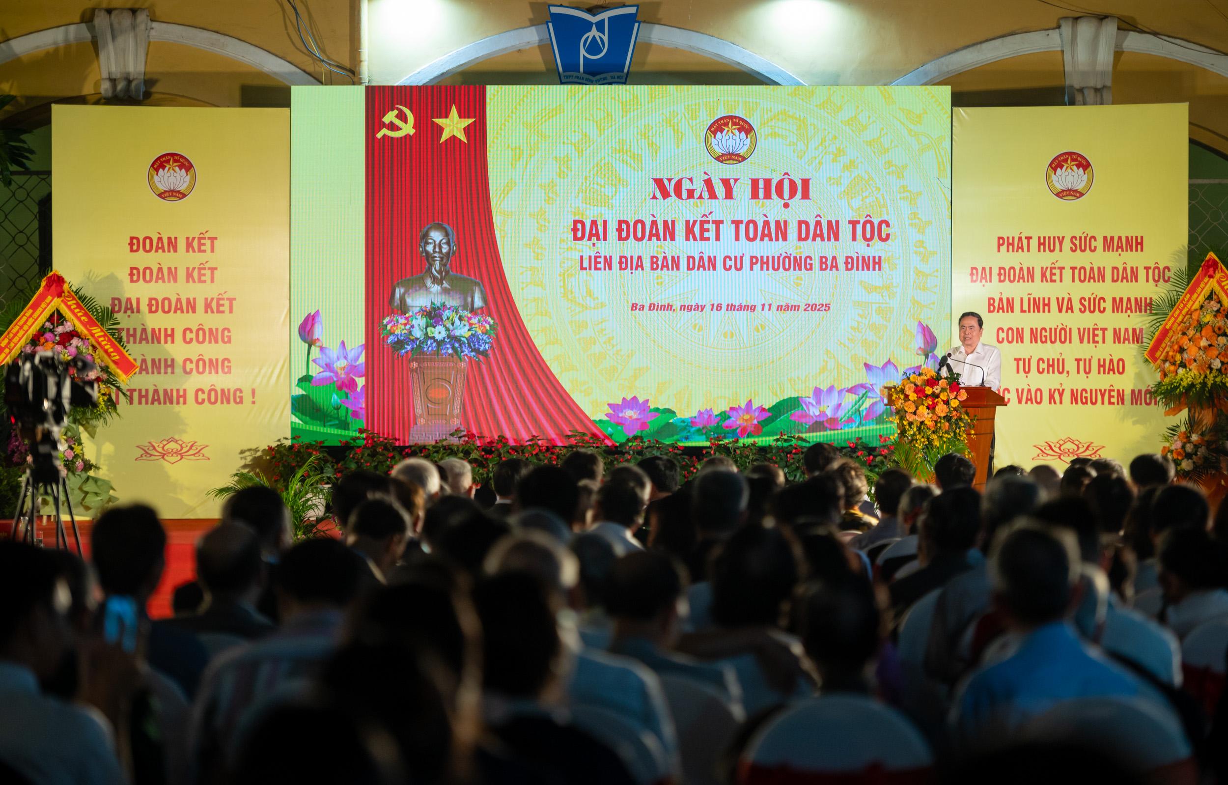 Tại Ngày hội, Tổng Bí thư Tô Lâm, Chủ tịch Quốc hội Trần Thanh Mẫn và các đại biểu cùng nhân dân liên địa bàn dân cư Cụm 1 phường Ba Đình đã cùng ôn lại truyền thống vẻ vang của MTTQ Việt Nam trong 95 năm qua; đánh giá những kết quả đạt được trong thực hiện các cuộc vận động, các phong trào thi đua yêu nước năm 2025 của liên địa bàn dân cư Cụm 1 và của phường Ba Đình, phát động Nhân dân thi đua thực hiện các mục tiêu, nhiệm vụ của năm 2026.