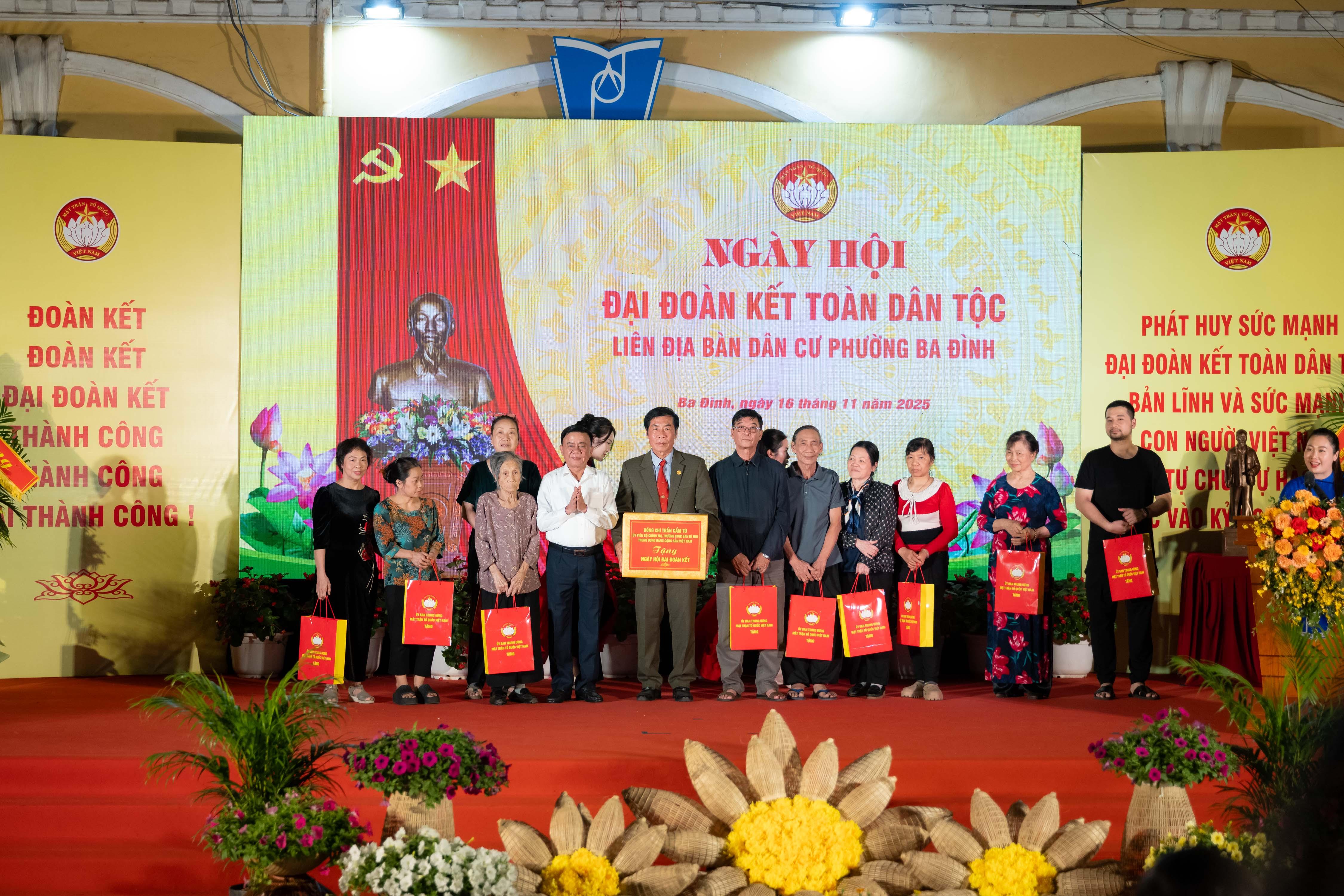 Chủ tịch Quốc hội Trần Thanh Mẫn, Thường trực Ban Bí thư Trần Cẩm Tú đã trao quà lưu niệm tặng Ban tổ chức Ngày hội và 10 gia đình chính sách tiêu biểu trên địa bàn phường Ba Đình.
