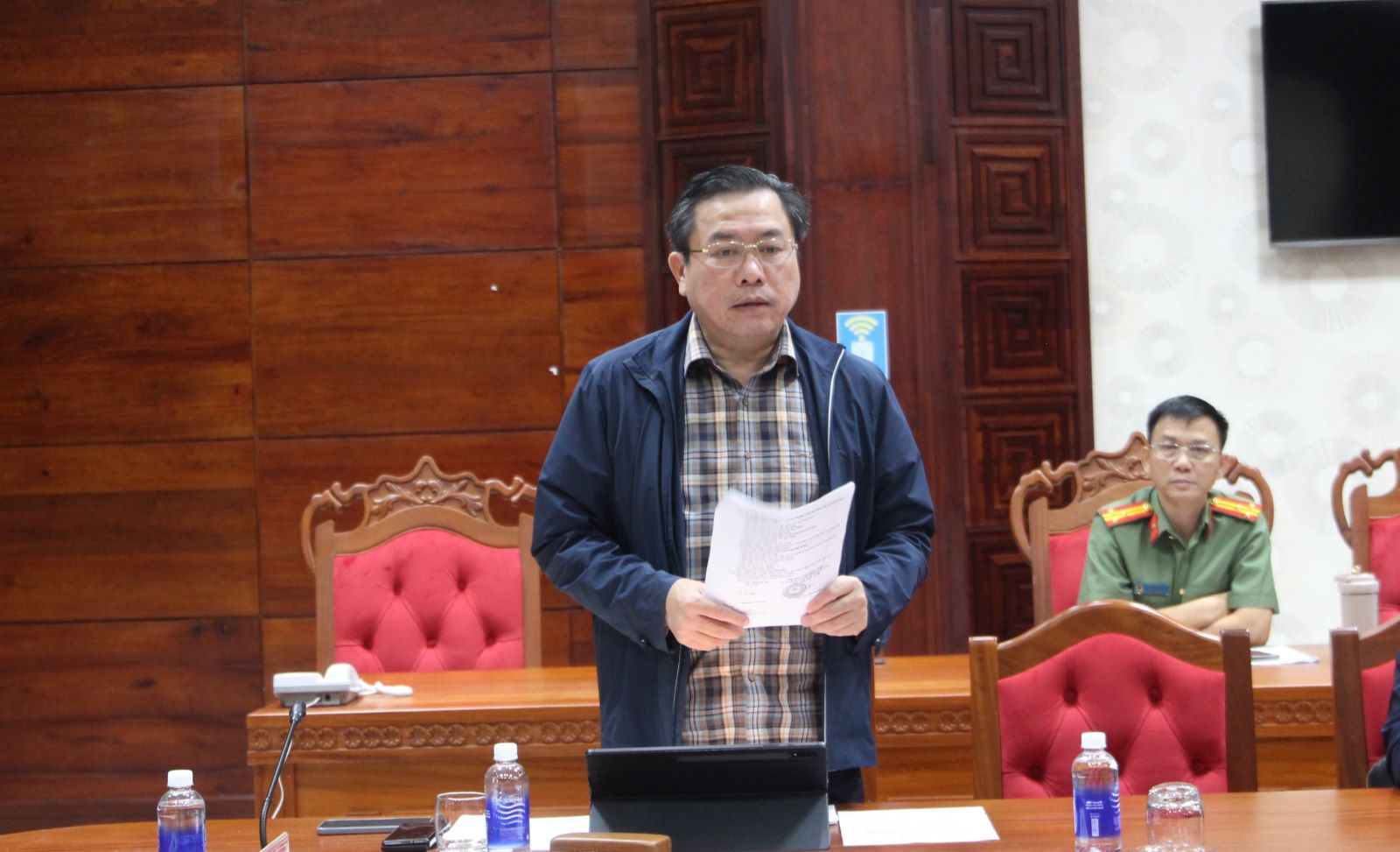 Phó Chủ tịch UBND tỉnh, Phó Chủ tịch Ủy ban bầu cử tỉnh Đào Mỹ phát biểu tại phiên họp.