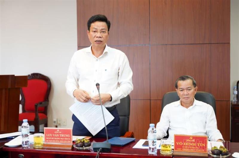 | Đồng chí Lưu Văn Trung, Phó Bí thư Thường trực Tỉnh ủy, Chủ tịch HĐND tỉnh phát biểu ý kiến tại hội nghị |