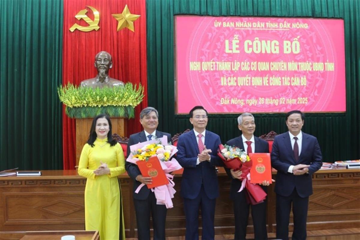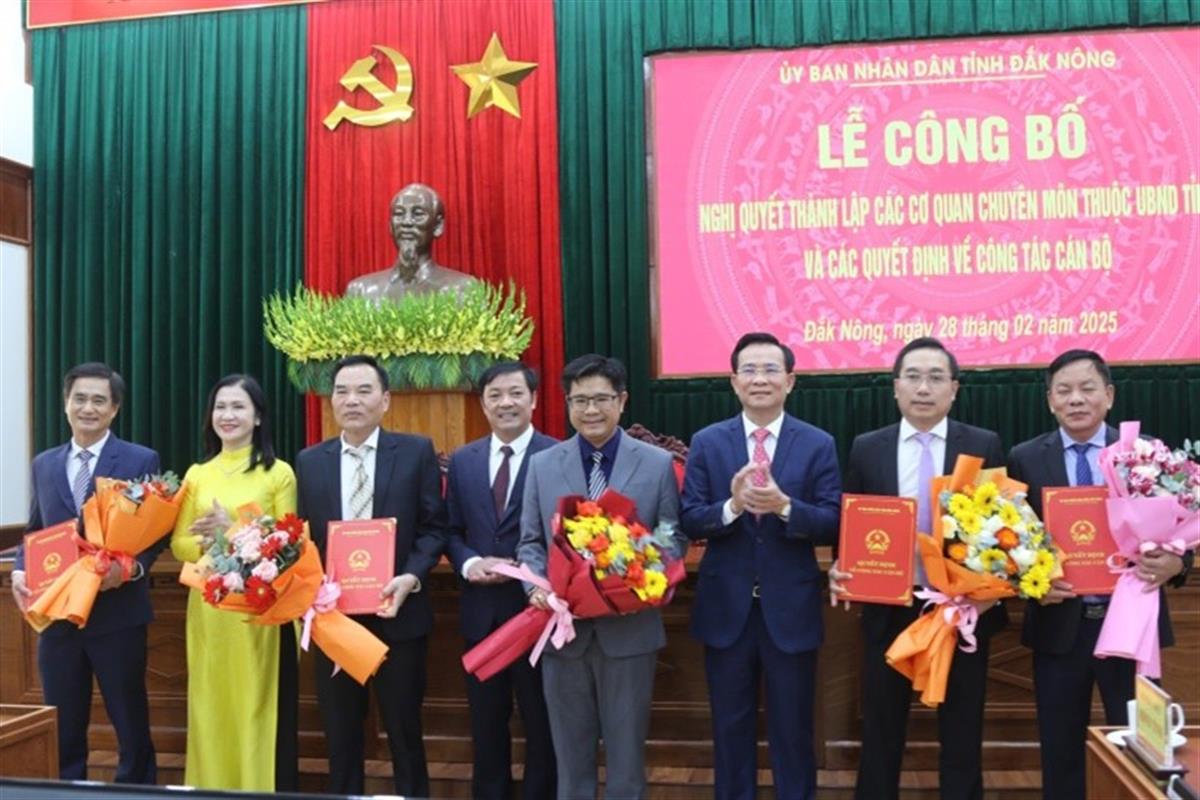 UBND tỉnh Đắk Nông công bố nghị quyết của HĐND tỉnh về sắp xếp tổ chức bộ máy và quyết định của Chủ tịch UBND tỉnh về công tác tổ chức cán bộ