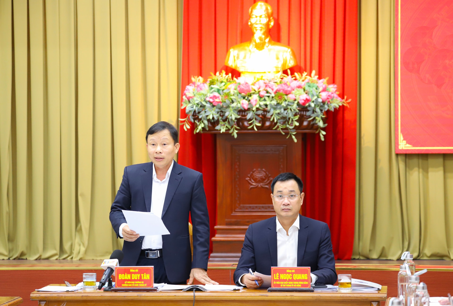 Ủy viên Trung ương Đảng, Bí thư Thành ủy Đà Nẵng Lê Ngọc Quang và Trưởng ban Tổ chức Thành ủy Đoàn Duy Tân chủ trì tại điểm cầu Đà Nẵng.