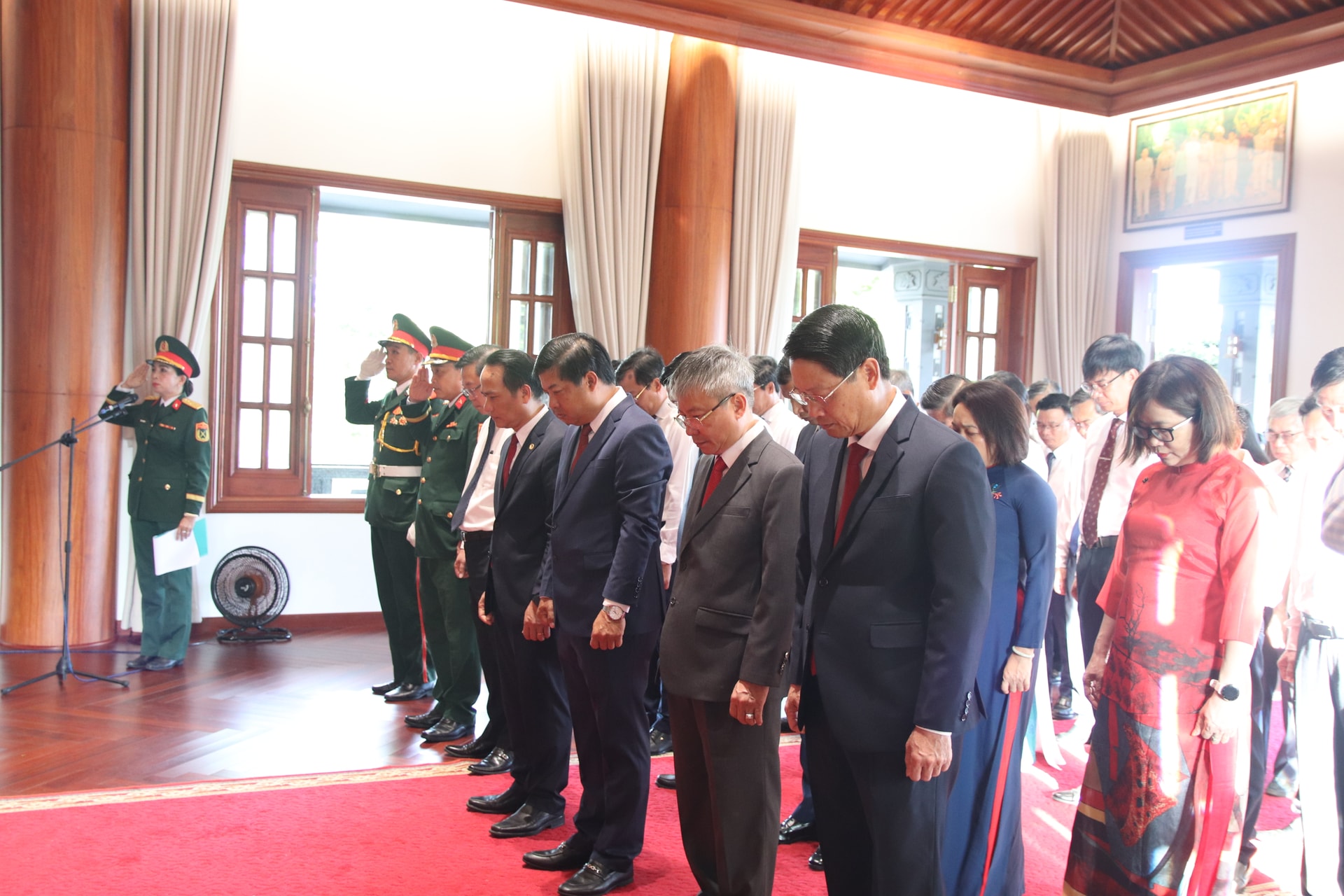Đoàn đại biểu dành phút mặc niệm, thành kính dâng hoa, dâng hương lên anh linh Chủ tịch Hồ Chí Minh - Anh hùng giải phóng dân tộc, lãnh tụ thiên tài của Đảng và nhân dân, nhà văn hóa kiệt xuất của đất nước.