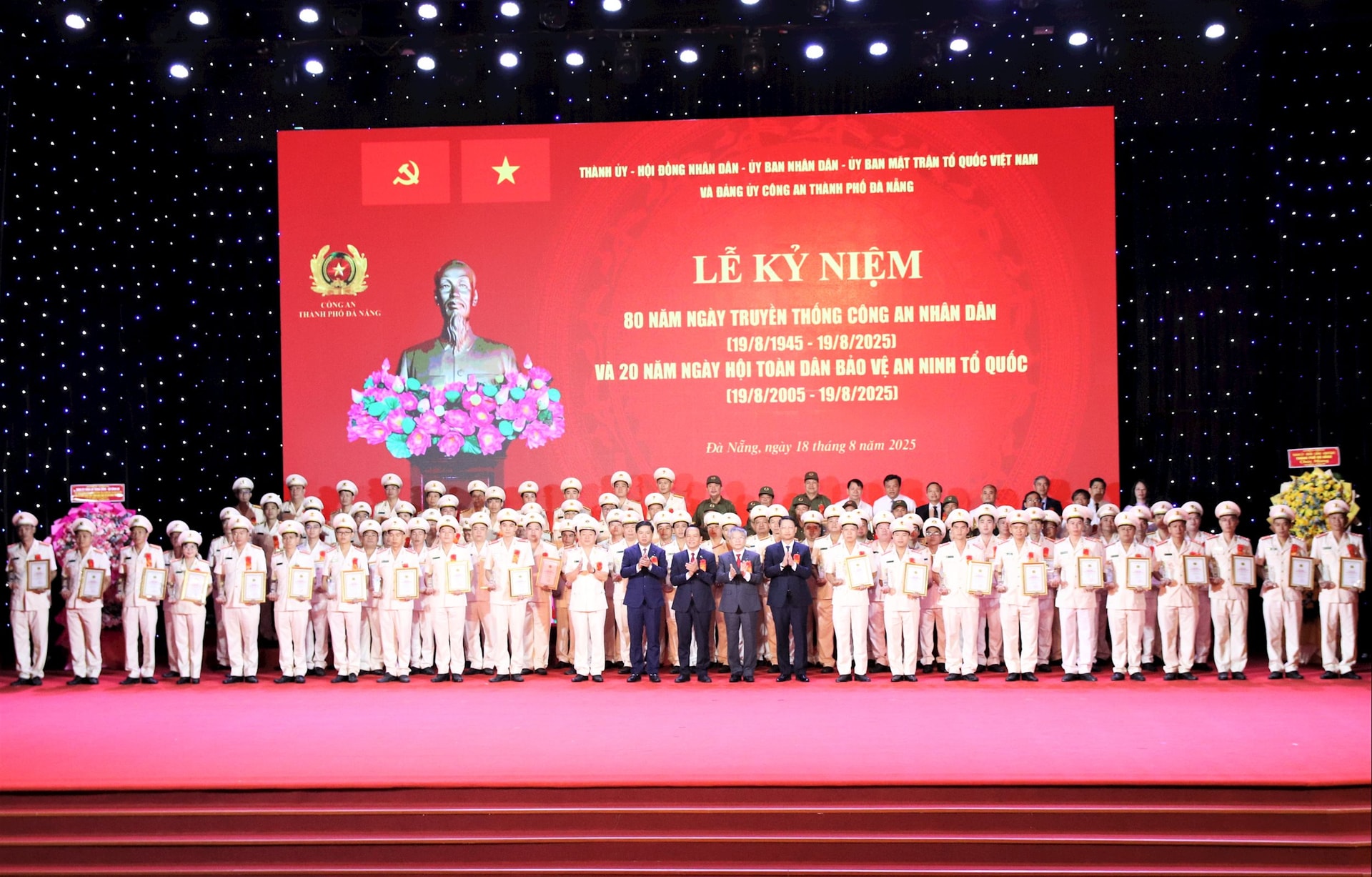 (Dangbodanang.vn) - Sáng 18/8, Thành ủy, HĐND, UBND, Ủy ban MTTQ Việt Nam thành phố và Đảng ủy Công an thành phố Đà Nẵng tổ chức lễ kỷ niệm 80 năm Ngày truyền thống Công an nhân dân Việt Nam (19/8/1945 - 19/8/2025) và 20 năm Ngày hội toàn dân bảo vệ an ninh Tổ quốc (19/8/2005 - 19/8/2025).