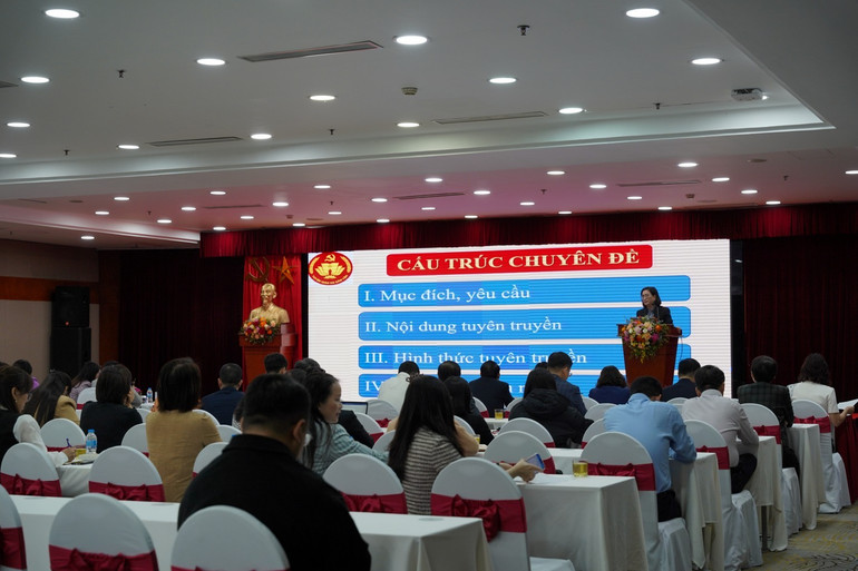 Hội nghị nghe đồng chí Đinh Thị Mai, Phó Trưởng Ban Tuyên giáo và Dân vận Trung ương thông tin chuyên đề "Công tác tuyên truyền trước thềm Đại hội đại biểu toàn quốc lần thứ XIV của Đảng: Nhiệm vụ trọng tâm hiện nay".