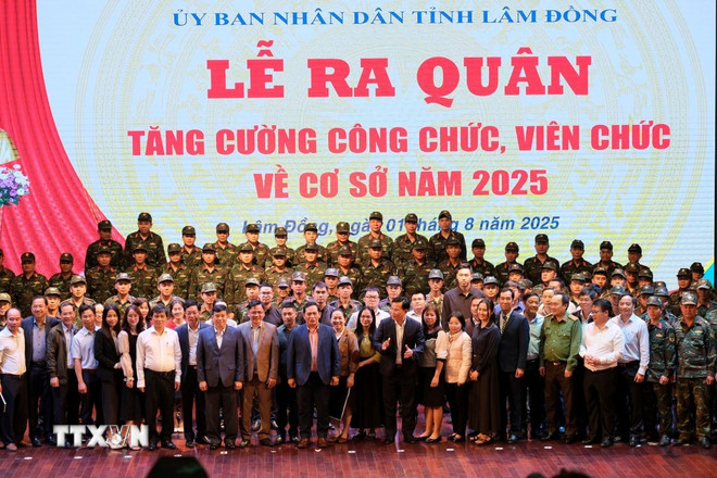 Cụ thể, ngay trong ngày đầu tháng 8/2025, Ủy ban Nhân dân tỉnh Lâm Đồng tổ chức ra quân tăng cường công chức, viên chức về cơ sở. Theo đó, tỉnh biệt phái 730 cán bộ, công chức, viên chức và lực lượng vũ trang về cơ sở. Đội ngũ công chức, viên chức cấp tỉnh tăng cường sẽ cùng với địa phương xử lý các điểm nghẽn, giúp giải quyết nhanh chóng công việc cho người dân và doanh nghiệp, không để quá tải làm ảnh hưởng đến hoạt động chung.