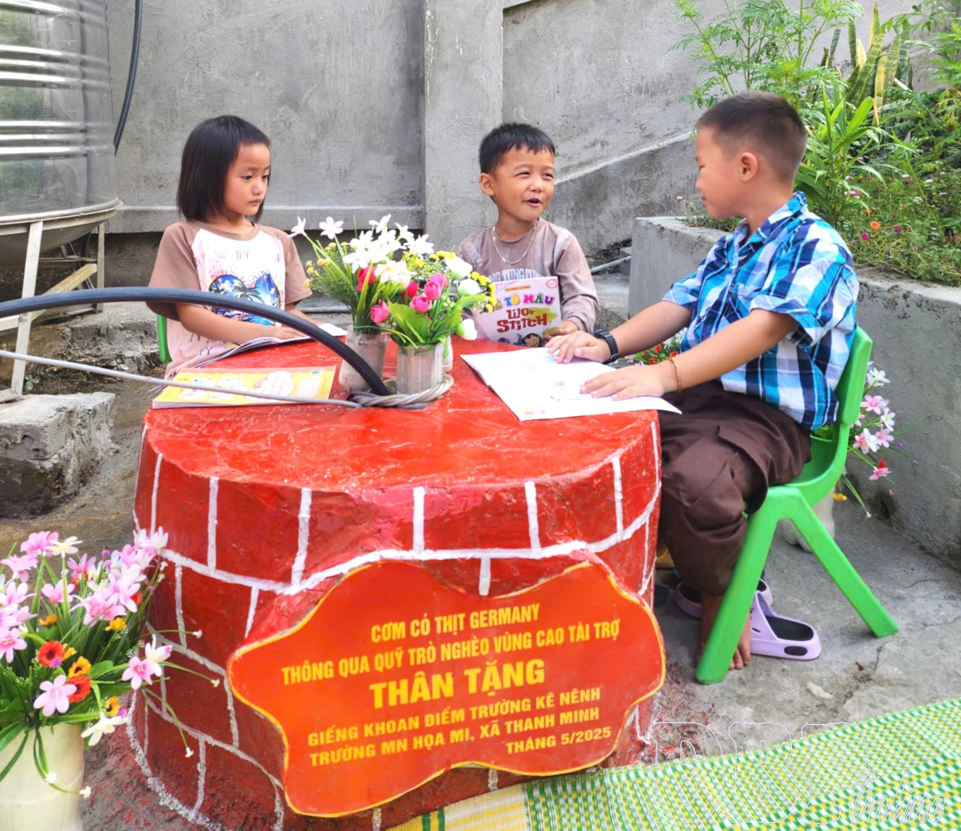 Cô Lý Kim Phượng, Hiệu trưởng Trường Mầm non Võ Nguyên Giáp chia sẻ: “Do thiếu nước nên có những thời điểm giáo viên phải đi xin nước của người dân để nấu ăn cho các cháu. Từ đó khiến việc sinh hoạt và dạy học bị ảnh hưởng rất nhiều. Khi được các cán bộ địa phương giới thiệu và kết nối với đơn vị hỗ trợ khoan 3 giếng nước, cô và trò nhà trường rất phấn khởi. Hiện nay, cả 3 giếng khoan mới đều có nguồn nước ổn định, giải quyết nỗi lo thiếu nước kéo dài nhiều năm của nhà trường. Chúng tôi biết ơn sự quan tâm của các đồng chí lãnh đạo cũng như tinh thần đồng hành của Quỹ Trò nghèo vùng cao, mạnh thường quân đã giúp nhà trường nâng cao điều kiện sinh hoạt, đảm bảo môi trường an toàn cho trẻ”.