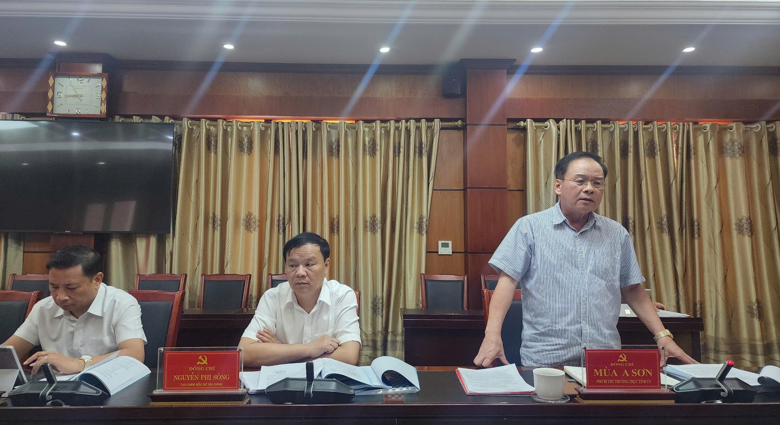 Đồng chí Vừ A Bằng - Phó Chủ tịch UBND tỉnh báo cáo tiến độ tại cuộc họp