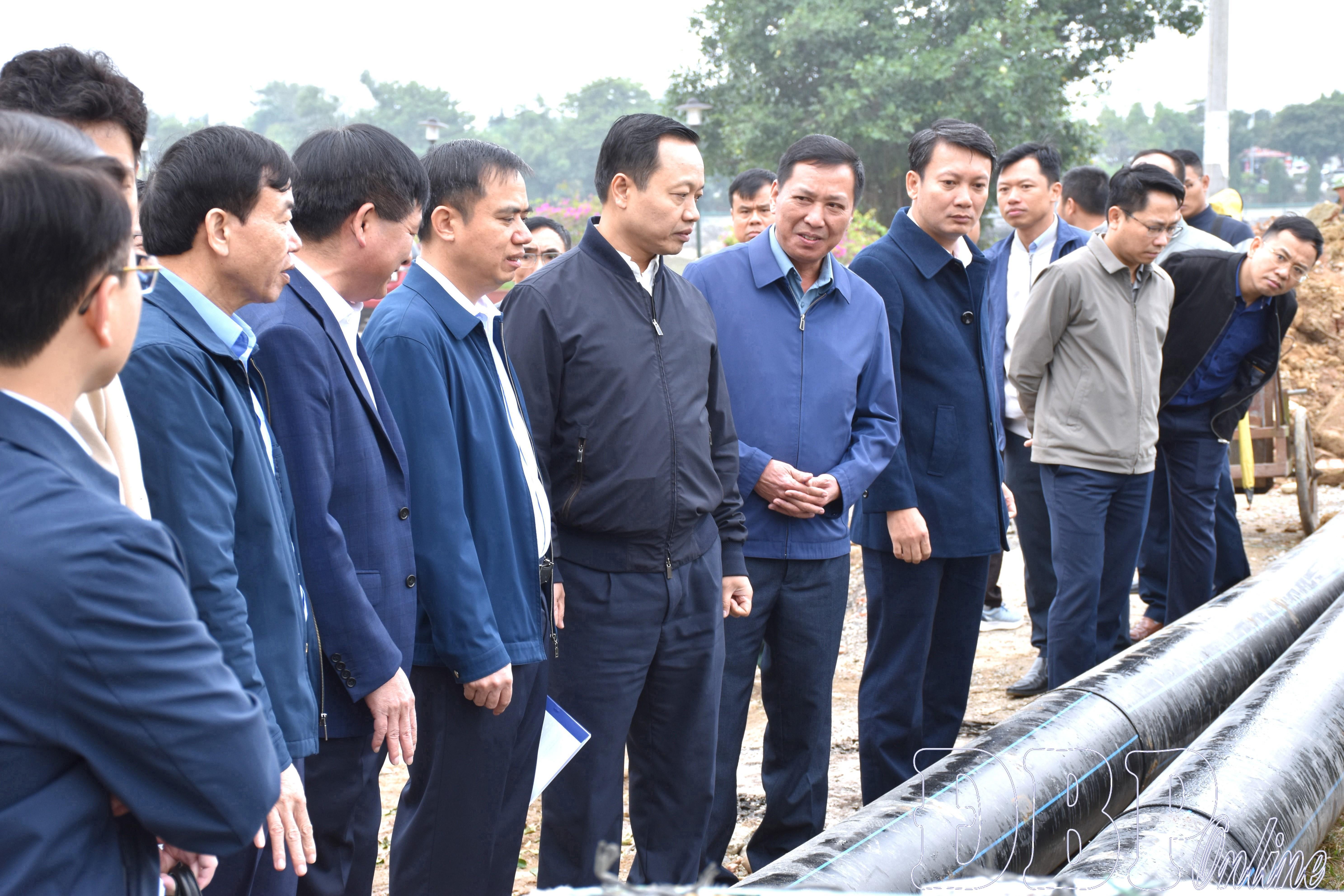 Bí thư Tỉnh ủy Trần Tiến Dũng và các đồng chí lãnh đạo tỉnh khảo sát các hạng mục quanh khu vực tuyến phố đi bộ, khu ẩm thực và kinh tế chợ đêm Mường Thanh.