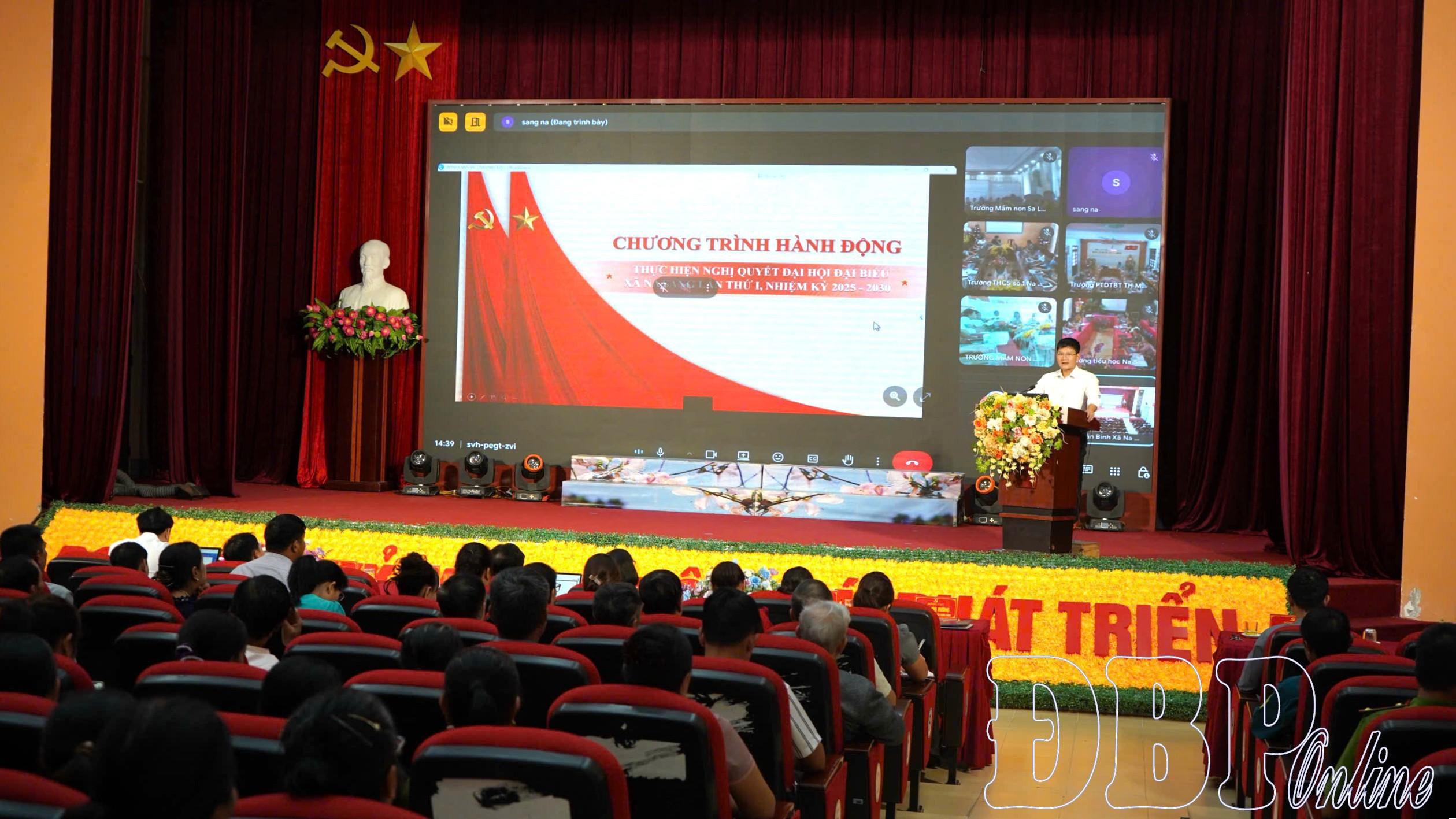 Tại xã Na Sang, trên cơ sở 18 mục tiêu, chỉ tiêu chủ yếu đến năm 2030được thông qua tại Đại hội, Đảng bộ xã Na Sang đã nhanh chóng bắt tay vào triển khai các chương trình hành động. Để tạo sự thống nhất và nâng cao hiệu quả thực hiện, Đảng ủy xã tổ chức hội nghị học tập, quán triệt và triển khai Nghị quyết cùng Chương trình hành động thực hiện Nghị quyết Đại hội Đảng bộ xã lần thứ I. Ngày 30/10, hội nghị được tổ chức trực tiếp, kết nối trực tuyến tới 18 điểm cầu trên địa bàn với hơn 1.200 cán bộ, đảng viên tham gia.