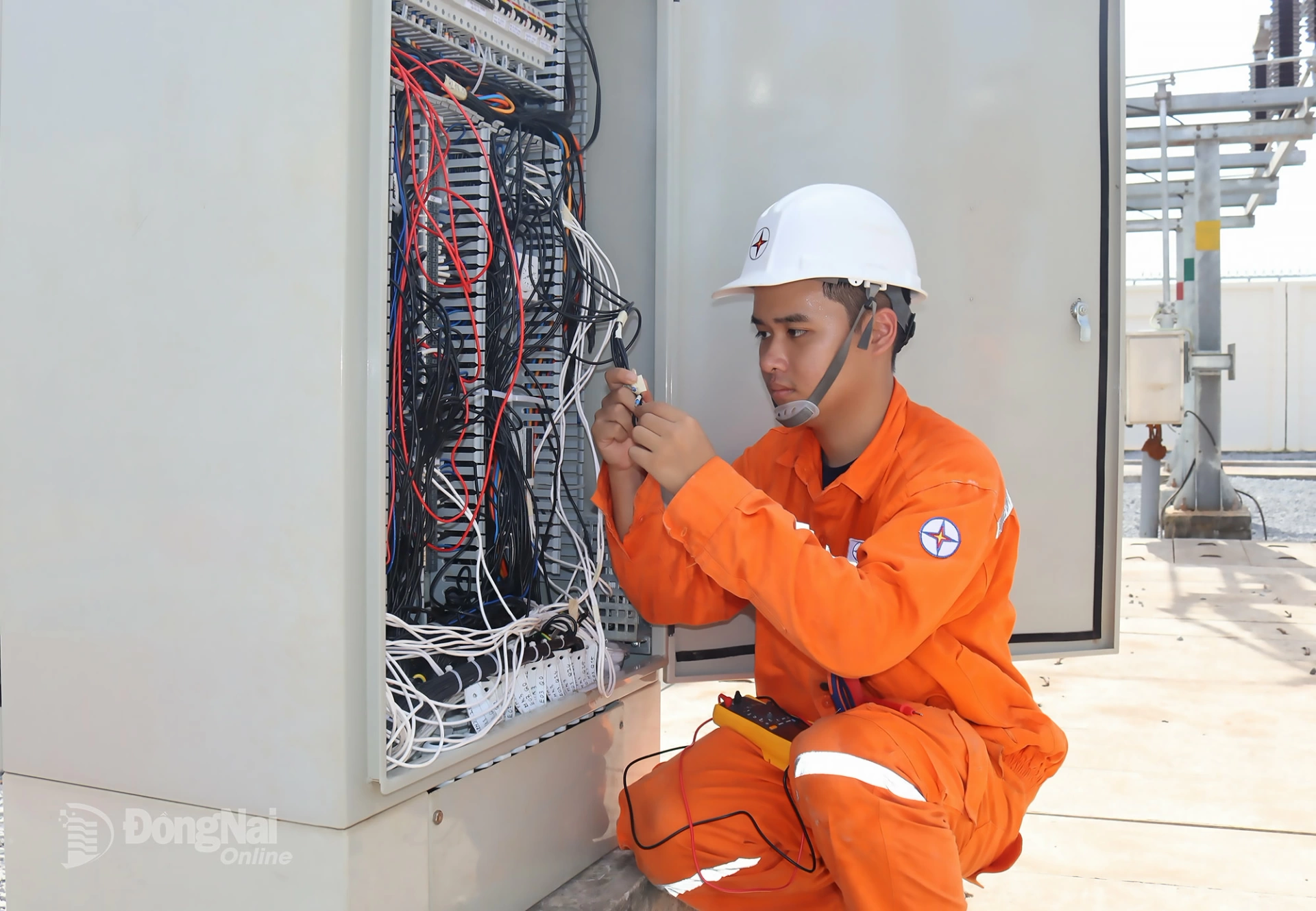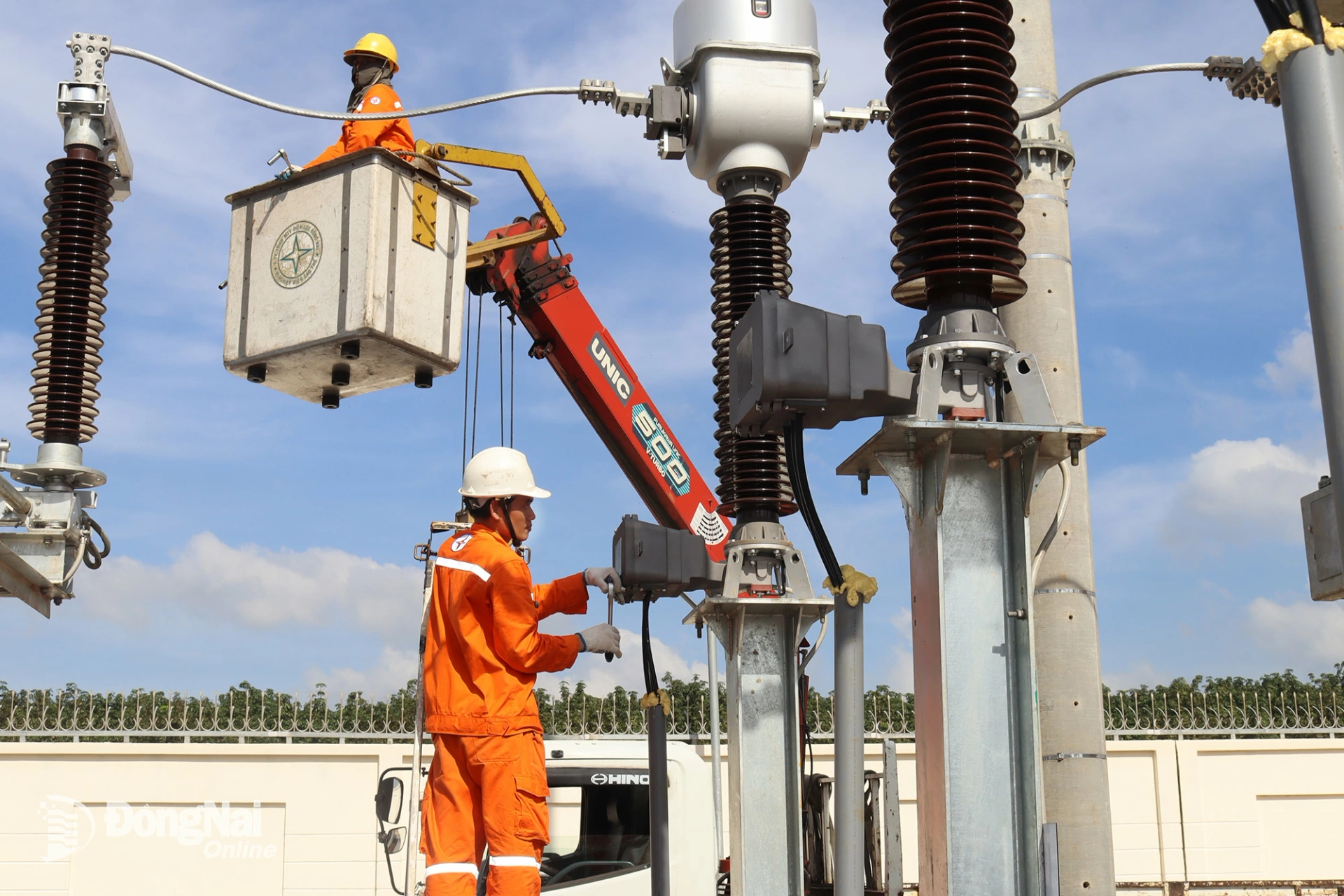 | Công nhân Công ty Điện lực Đồng Nai kiểm tra kỹ thuật trước thời điểm đóng điện công trình cung cấp điện cho sân bay Long Thành (giai đoạn 2). |