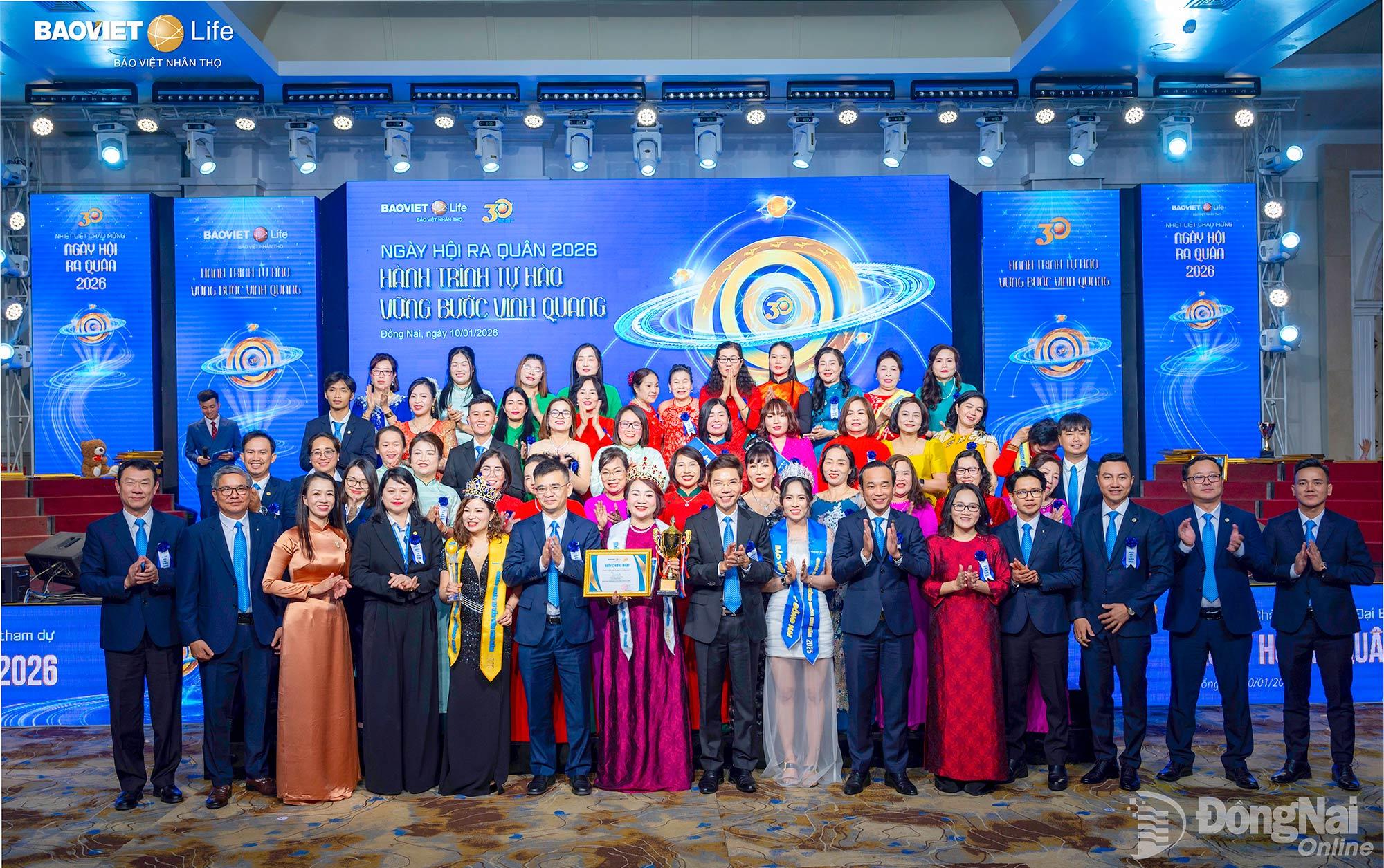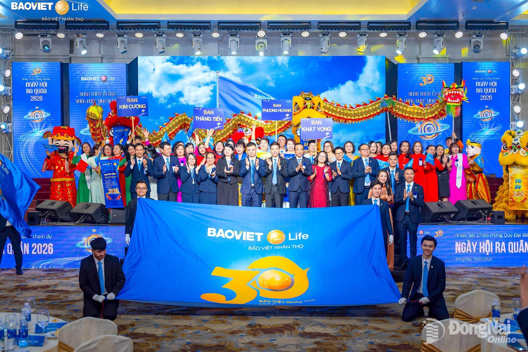 Tại buổi lễ, Ban Giám đốc Công ty Bảo Việt Nhân thọ Đồng Nai đã phát động Ngày hội ra quân và triển khai kế hoạch kinh doanh năm 2026 với phương châm “Hành trình tự hào - Vững bước vinh quang”.