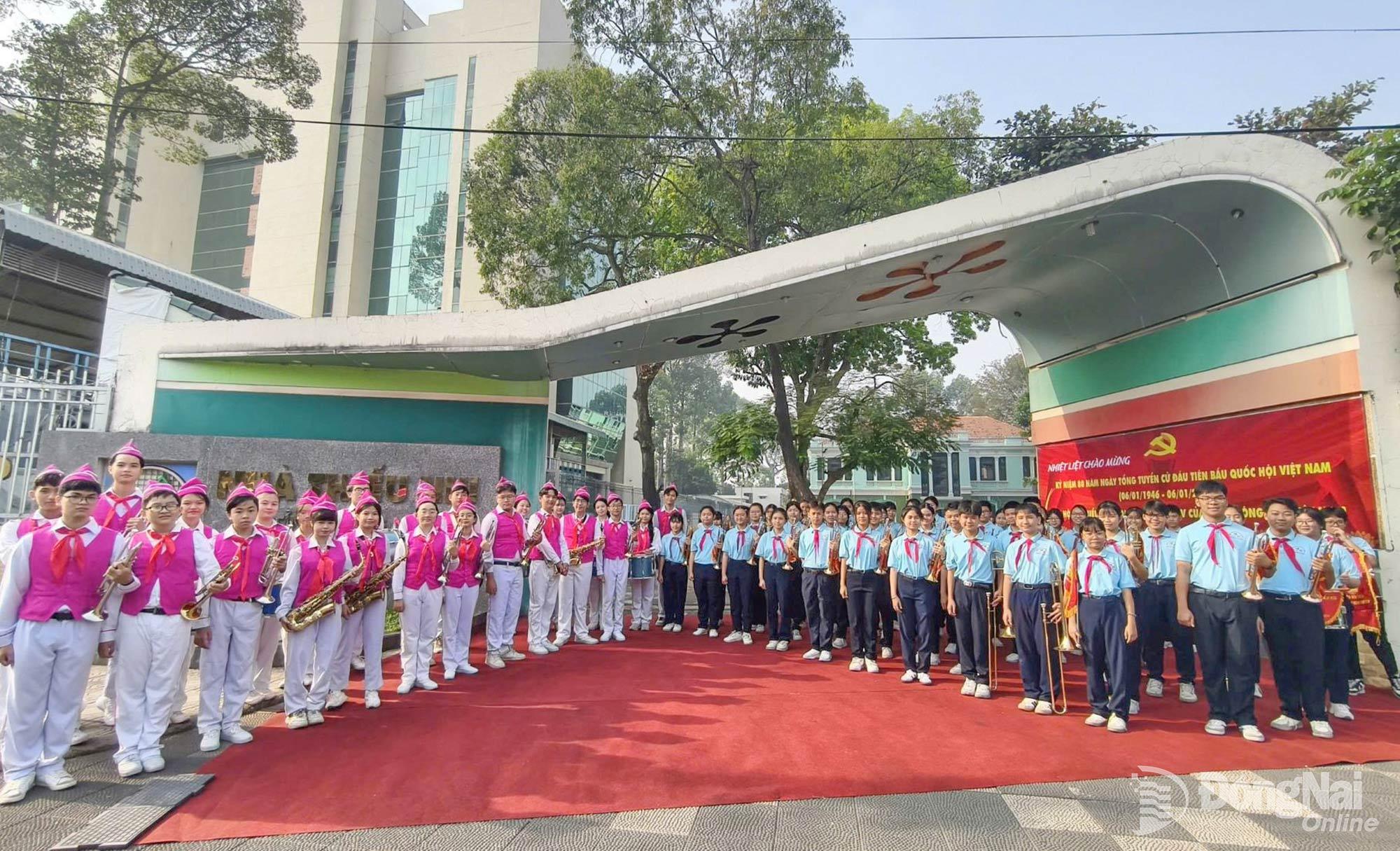 | Đội trống kèn Nhà thiếu nhi Đồng Nai biểu diễn tại chương trình. Ảnh: Nhà thiếu nhi Đồng Nai cung cấp |