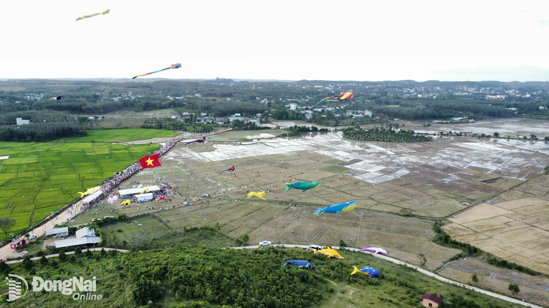 | Lễ hội Diều sáo nghệ thuật Bù Đăng nhìn từ trên cao. Ảnh Xuân Túc |