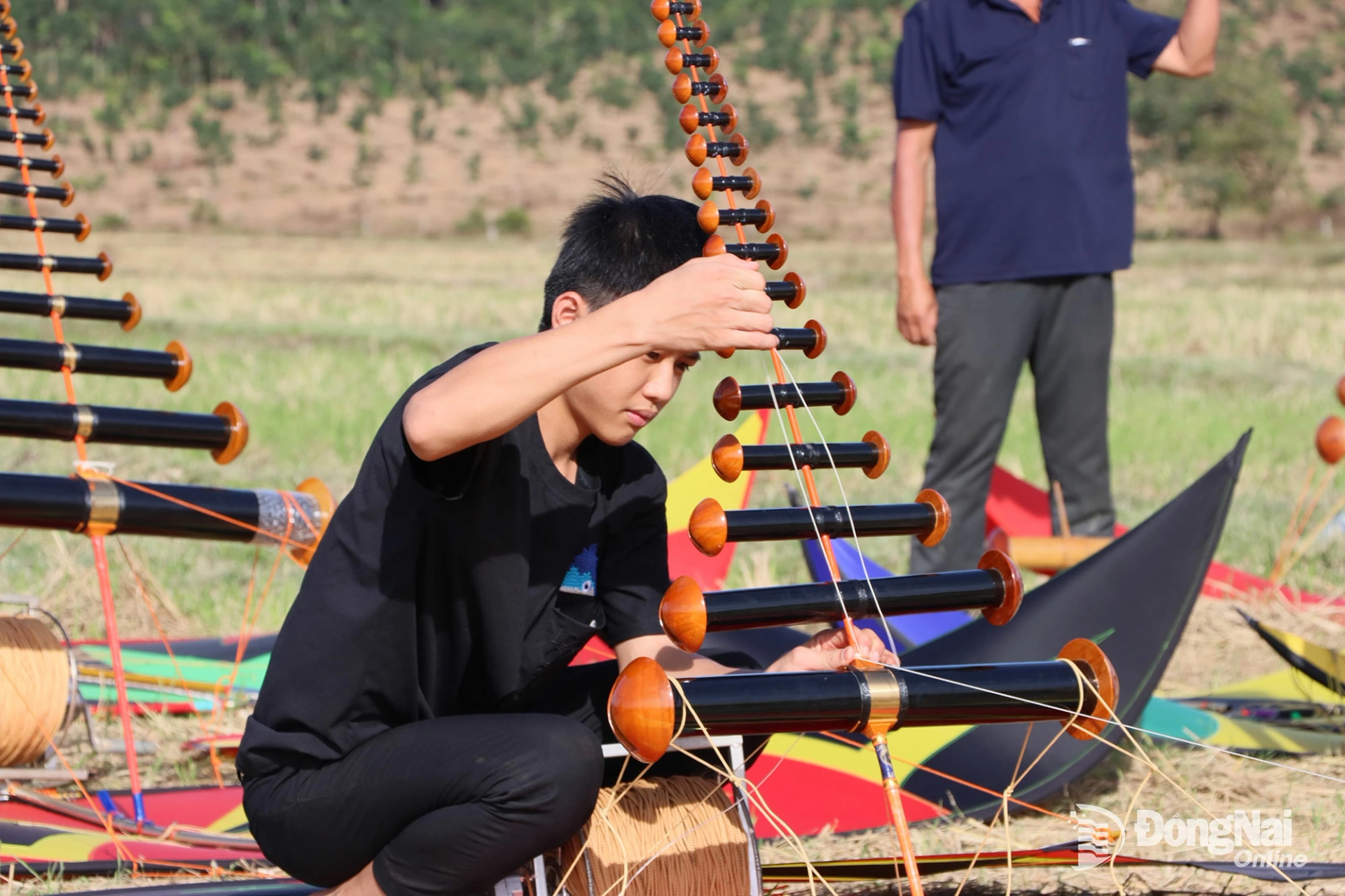 | Các đội kiểm tra lần cuối các cánh diều trước khi tham gia cuộc thi. Ảnh: Xuân Túc |