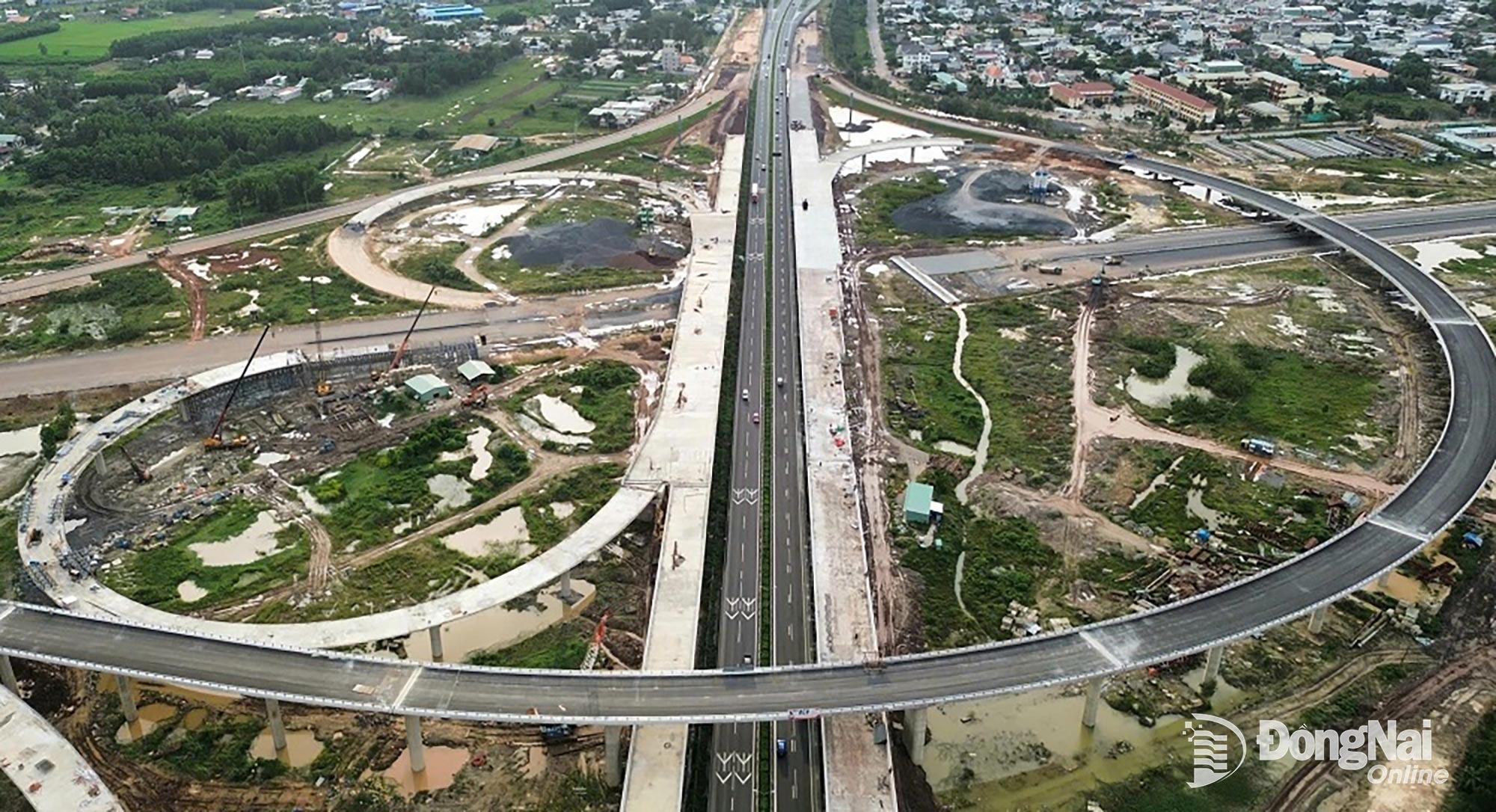 | Dự kiến 2 nhánh cầu vượt tại nút giao Long Thành sẽ thông xe vào ngày 9-12-2025. Ảnh: Phạm Tùng |