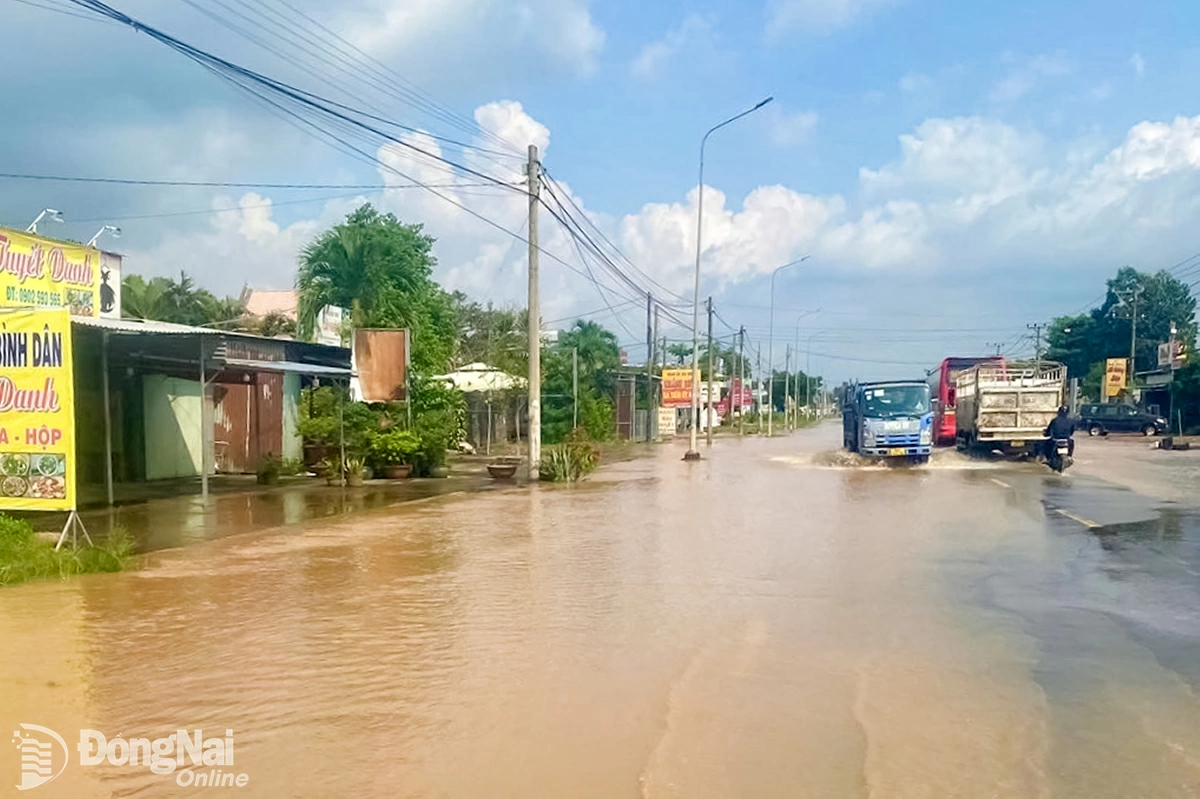 | Quốc lộ 1 đoạn qua xã Xuân Phú (tỉnh Đồng Nai) ngập trên diện rộng. Ảnh: Người dân cung cấp |