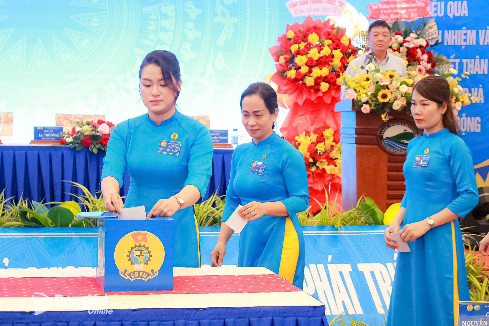 | Các đại biểu bỏ phiếu bầu Ban Chấp hành Công đoàn Công ty cổ phần Đầu tư và Phát triển Golf Long Thành. Ảnh: N.Hòa |