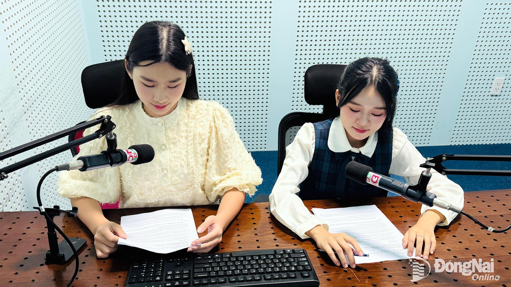 | Ca sĩ, Mc Thảo Nhi và Tuyết Anh giao lưu trò chuyện với các bạn khán giả trong chương trình Radio tuổi thơ của Báo và Phát thanh, Truyền hình Đồng Nai. Ảnh: Minh Huệ |