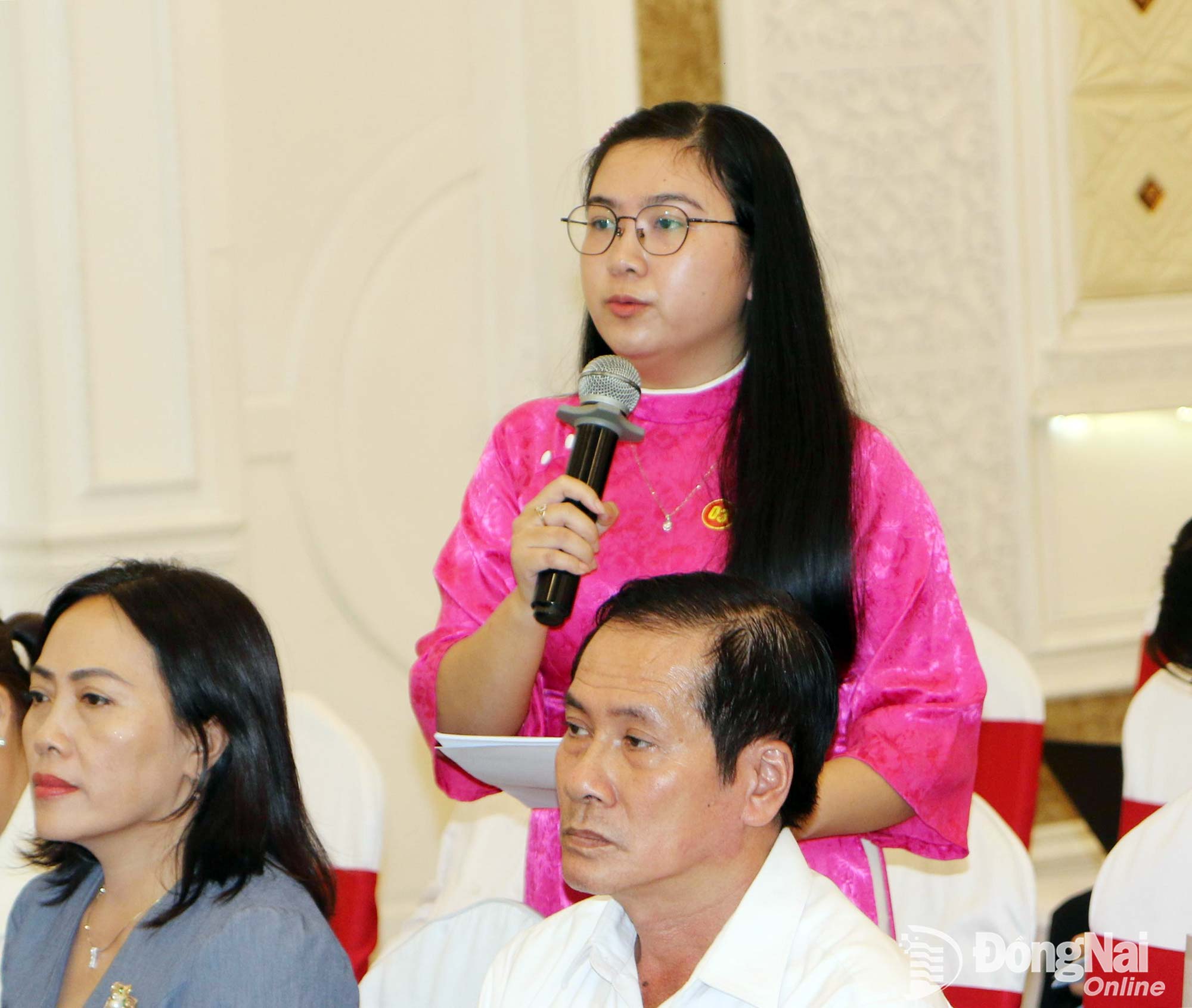 | Chủ tịch Ủy ban MTTQ Việt Nam phường Trấn Biên Nguyễn Ngọc Thảo An phát biểu tại hội nghị. Ảnh: Văn Truyên |