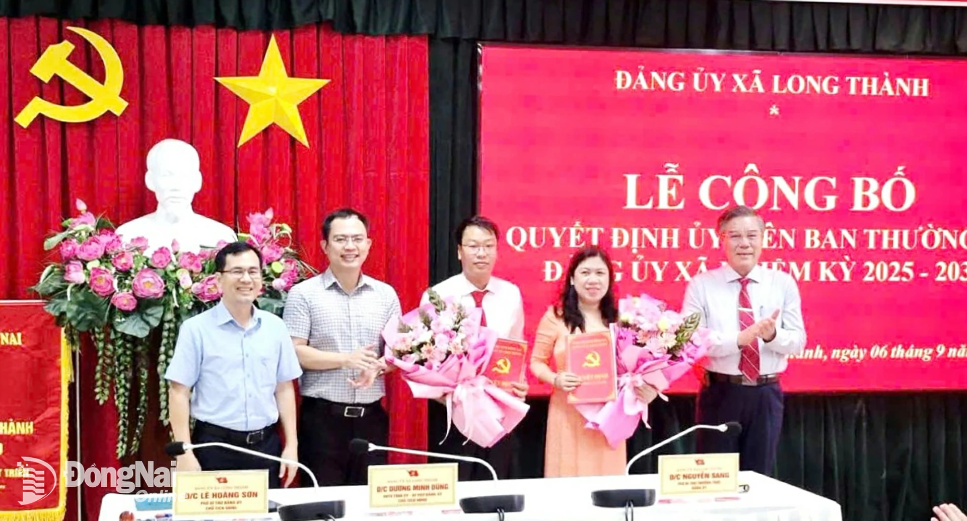 Ngày 6-9, Đảng ủy xã Long Thành tổ chức Lễ công bố quyết định của Tỉnh ủy về việc chuẩn y Ủy viên Ban Thường vụ Đảng ủy xã Long Thành nhiệm kỳ 2025-2030.