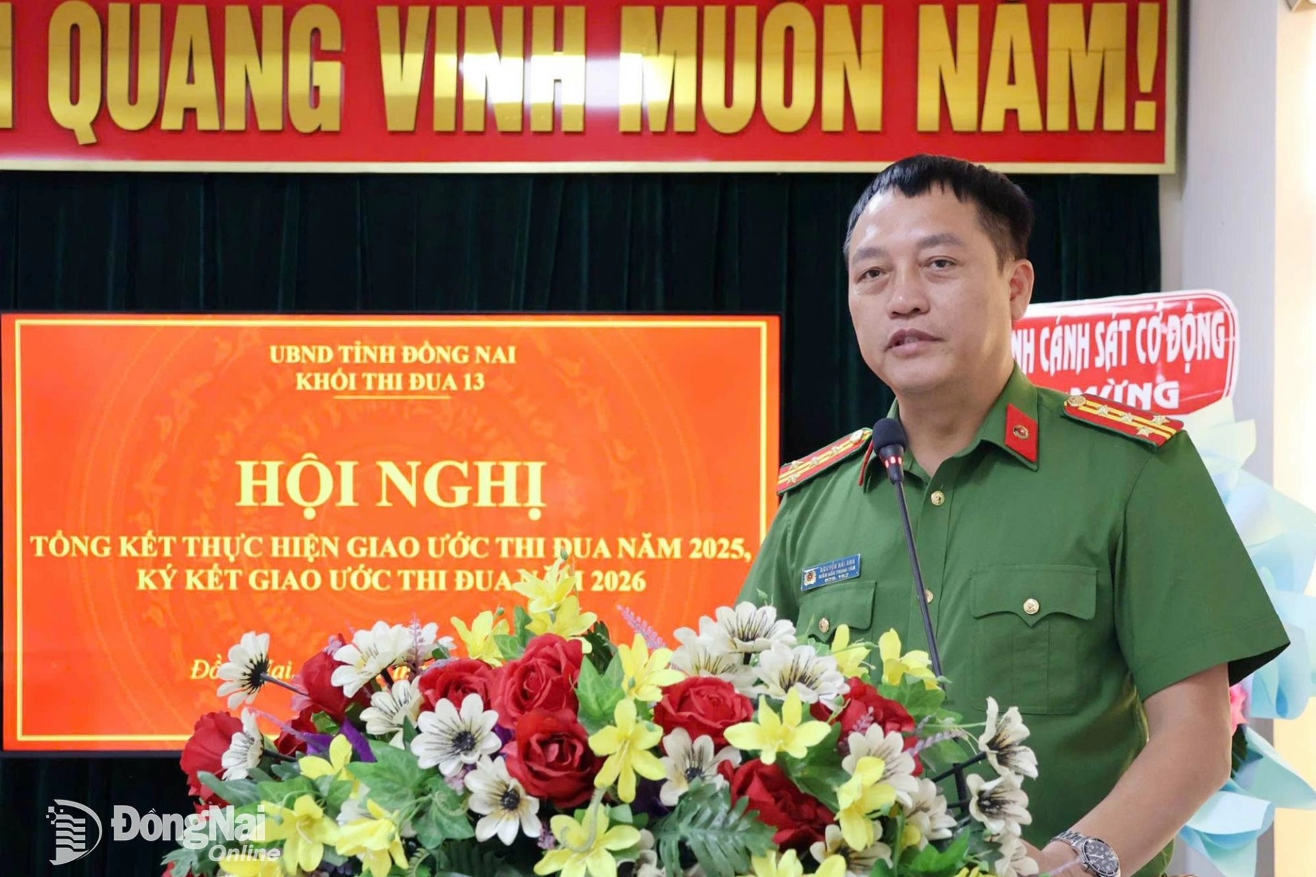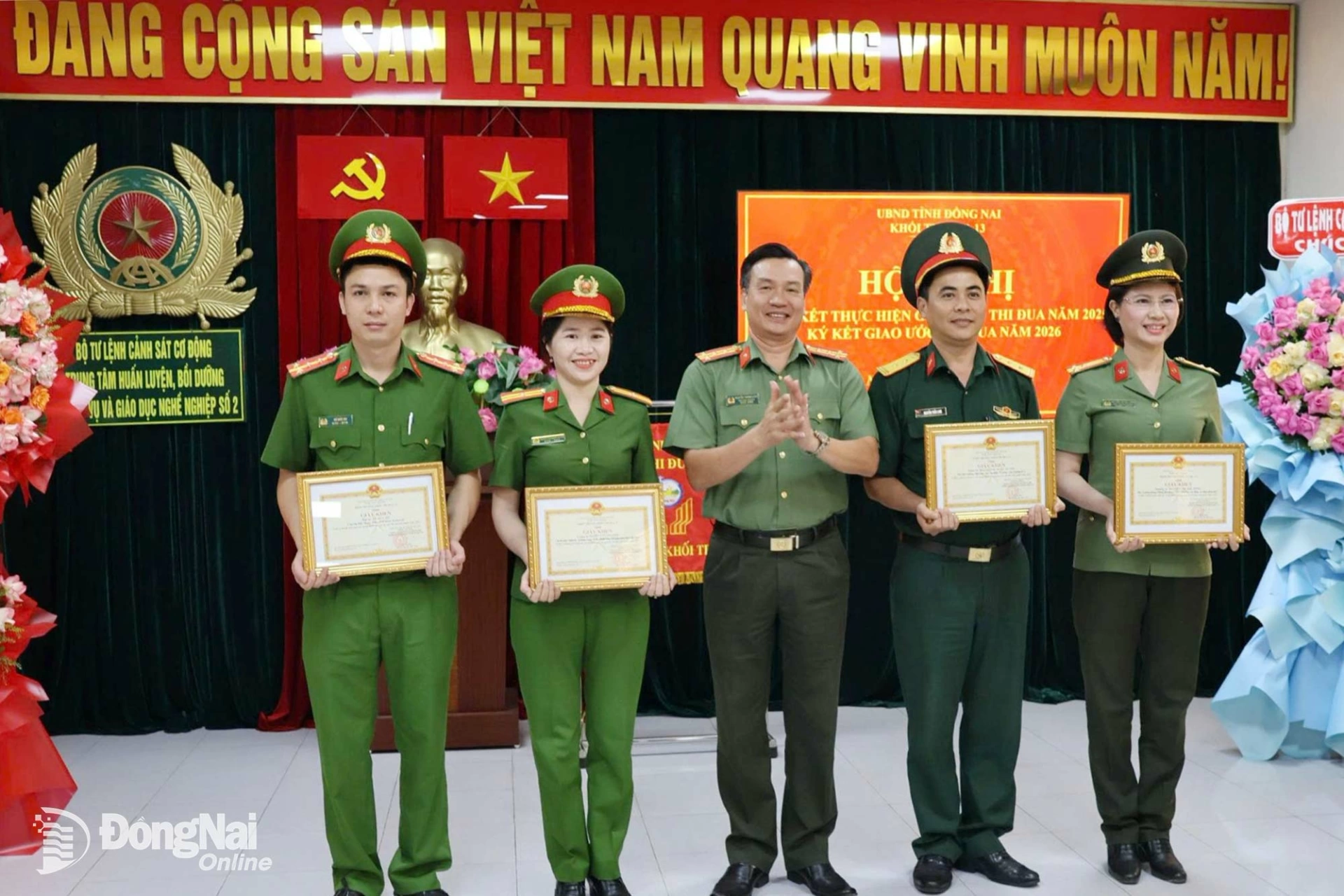 Tại hội nghị, các đơn vị trong khối thống nhất bàn giao nhiệm vụ khối trưởng năm 2026 cho Trường cao đẳng An ninh nhân dân I. Đồng thời, bình xét và đề nghị UBND tỉnh khen thưởng các danh hiệu Cờ thi đua xuất sắc và bằng khen của UBND tỉnh Đồng Nai cho các tập thể xuất sắc trong phong trào TĐYN năm 2025.