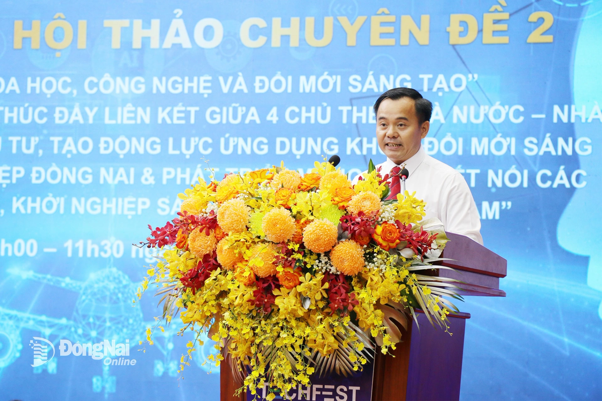 Phát biểu khai mạc hội thảo, Phó Giám đốc Sở KHCN tỉnh Đồng Nai Nguyễn Thanh Phong nhấn mạnh: Hội thảo này hướng đến thực tiễn triển khai ở cấp sở, doanh nghiệp và cộng đồng khởi nghiệp sáng tạo với trọng tâm là liên kết hiệu quả giữa 4 chủ thể: Nhà nước - nhà trường - doanh nghiệp - nhà đầu tư về thúc đẩy phát triển KHCN, đổi mới sáng tạo và chuyển đổi số tại địa phương. Đây cũng dịp để nhìn lại thực trạng và trao đổi những giải pháp cụ thể về liên kết và ứng dụng KHCN trong doanh nghiệp Đồng Nai…