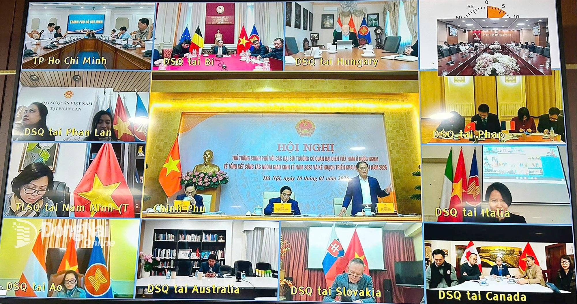 (ĐN) - Tối 10-1, Thủ tướng Chính phủ Phạm Minh Chính chủ trì Hội nghị trực tuyến với các Đại sứ, Trưởng Cơ quan đại diện Việt Nam ở nước ngoài về tổng kết công tác ngoại giao kinh tế (NGKT) năm 2025 và kế hoạch triển khai nhiệm vụ năm 2026.