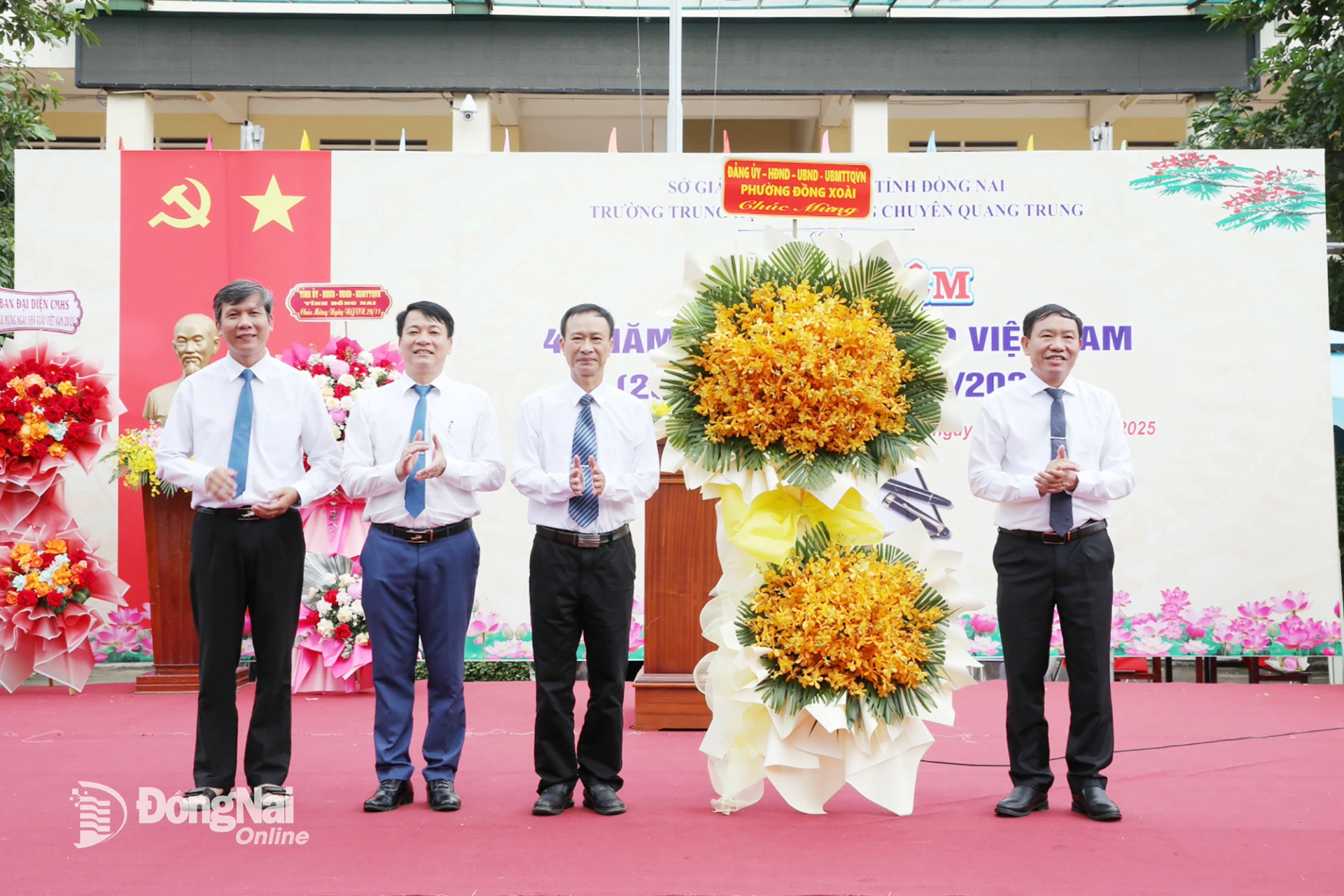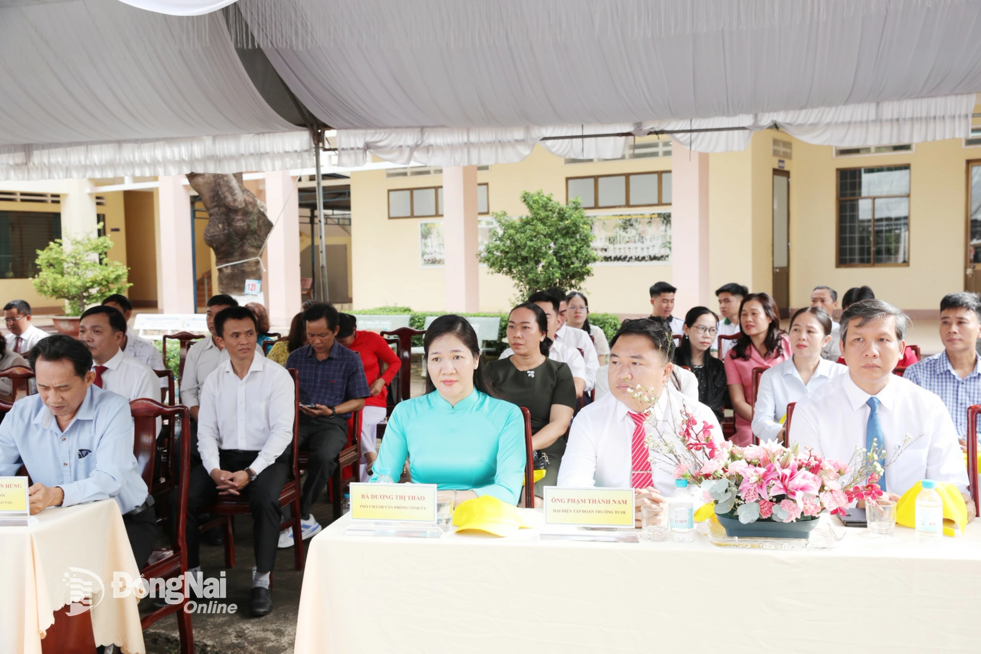 Ủy viên dự khuyết Trung ương Đảng, Phó Bí thư Thường trực Tỉnh ủy, Chủ tịch HĐND tỉnh Đồng Nai Tôn Ngọc Hạnh; lãnh đạo các sở, ngành, địa phương, các doanh nghiệp, đại diện cha mẹ học sinh đã dự và chia vui với thầy trò nhà trường.