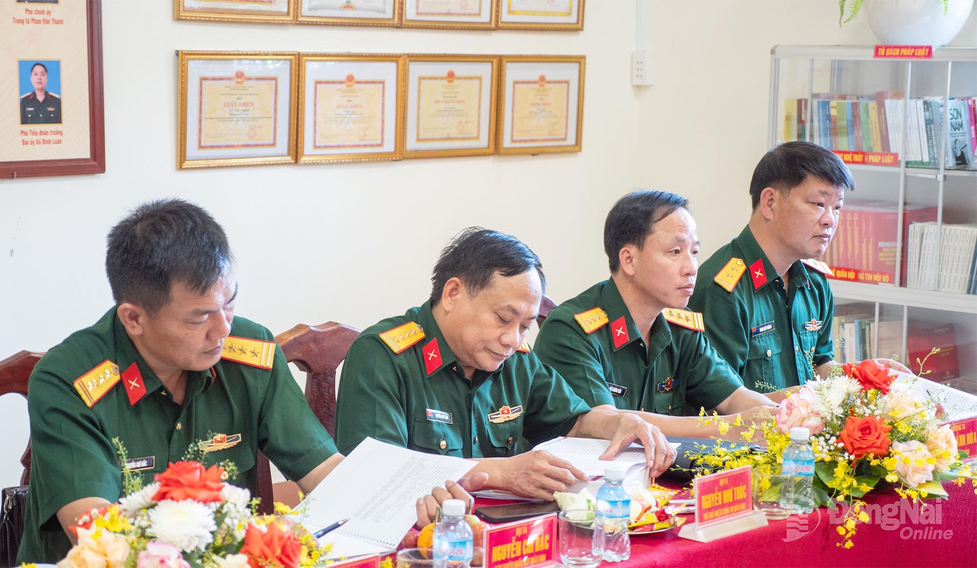 | Đại tá Nguyễn Như Trúc, Phó Chủ nhiệm Chính trị Quân khu 7 (thứ 2 từ trái sang) chấm thi Hội thi phòng Hồ Chí Minh tại Tiểu đoàn 208, Trung đoàn 736. Ảnh: Xuân Lượng |