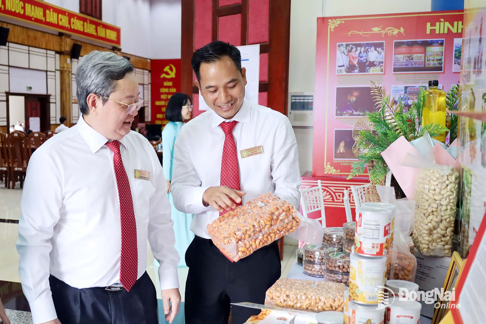 | Ủy viên Ban Thường vụ Tỉnh ủy, Trưởng Ban Nội chính Tỉnh ủy Đồng Nai Nguyễn Minh Hợi cùng đại biểu tham quan các sản phẩm đặc trưng của địa phương được trưng bày bên lề đại hội. Ảnh: Ngọc Thuận |