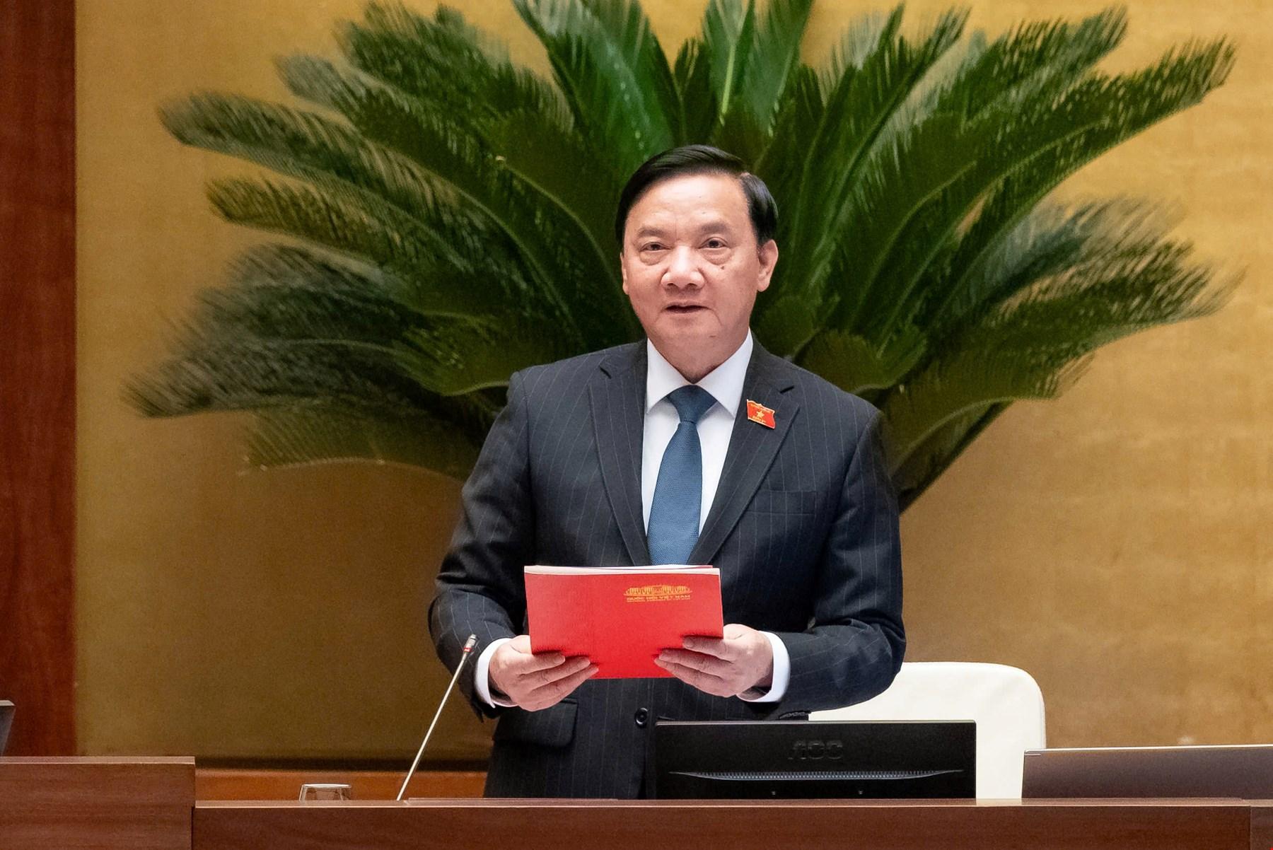 | Chủ nhiệm Ủy ban Pháp luật và Tư pháp Hoàng Thanh Tùng trình bày báo cáo giải trình tiếp thu |