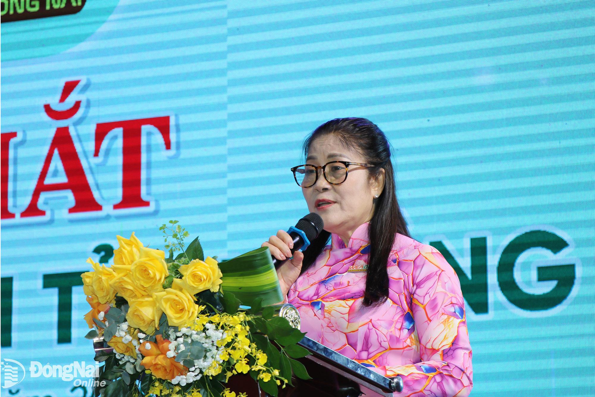 Bà Giang Thị Lan Thu, Chủ tịch Hội Nữ doanh nhân tỉnh Đồng Nai phát biểu những định hướng phát triển của hội trong giai đoạn mới. Ảnh: Vương Thế