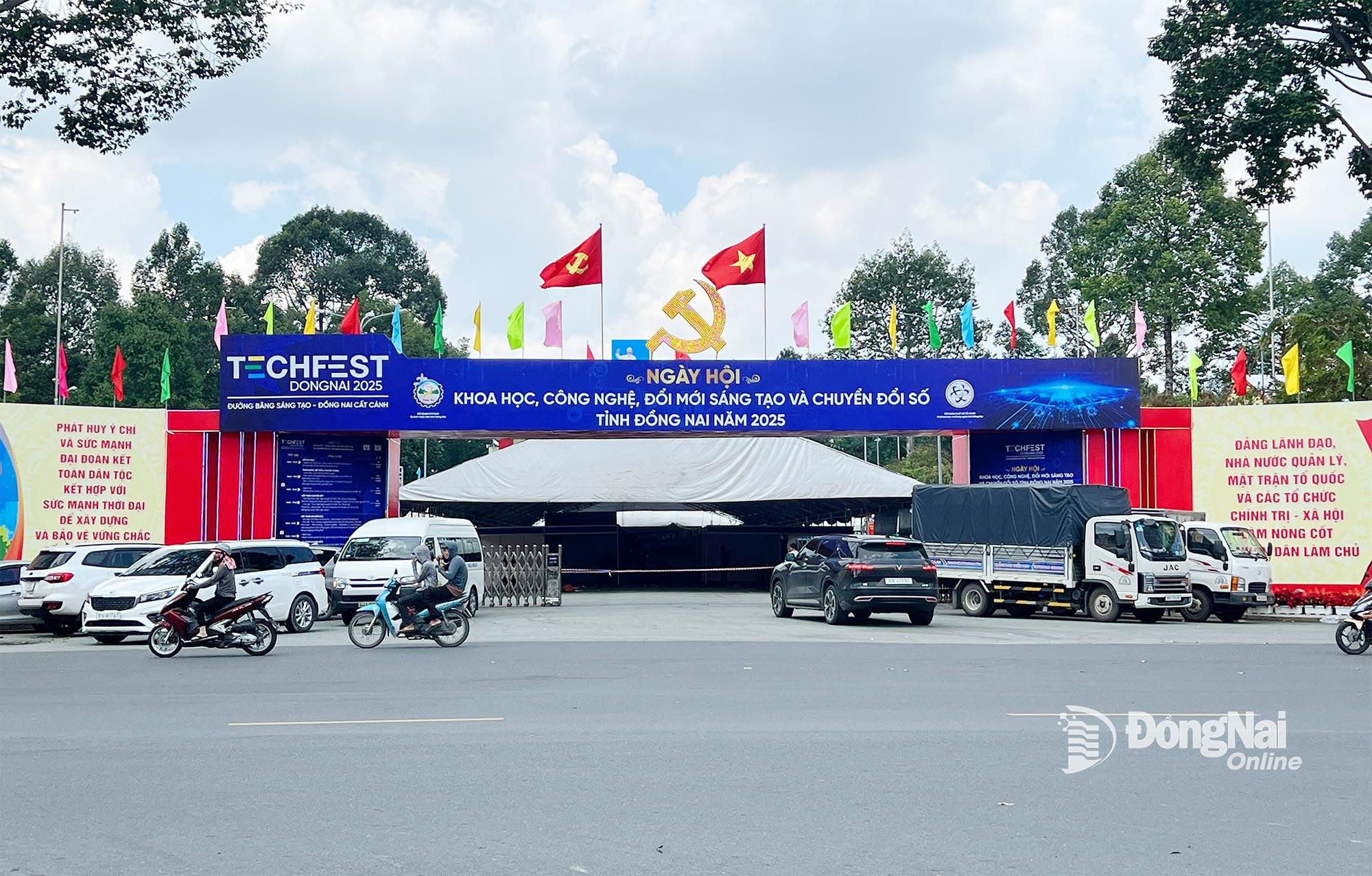 | Không gian cổng chào của sự kiện Techfest Dong Nai 2025 trước ngày khai mạc. Ảnh: Hải Quân |