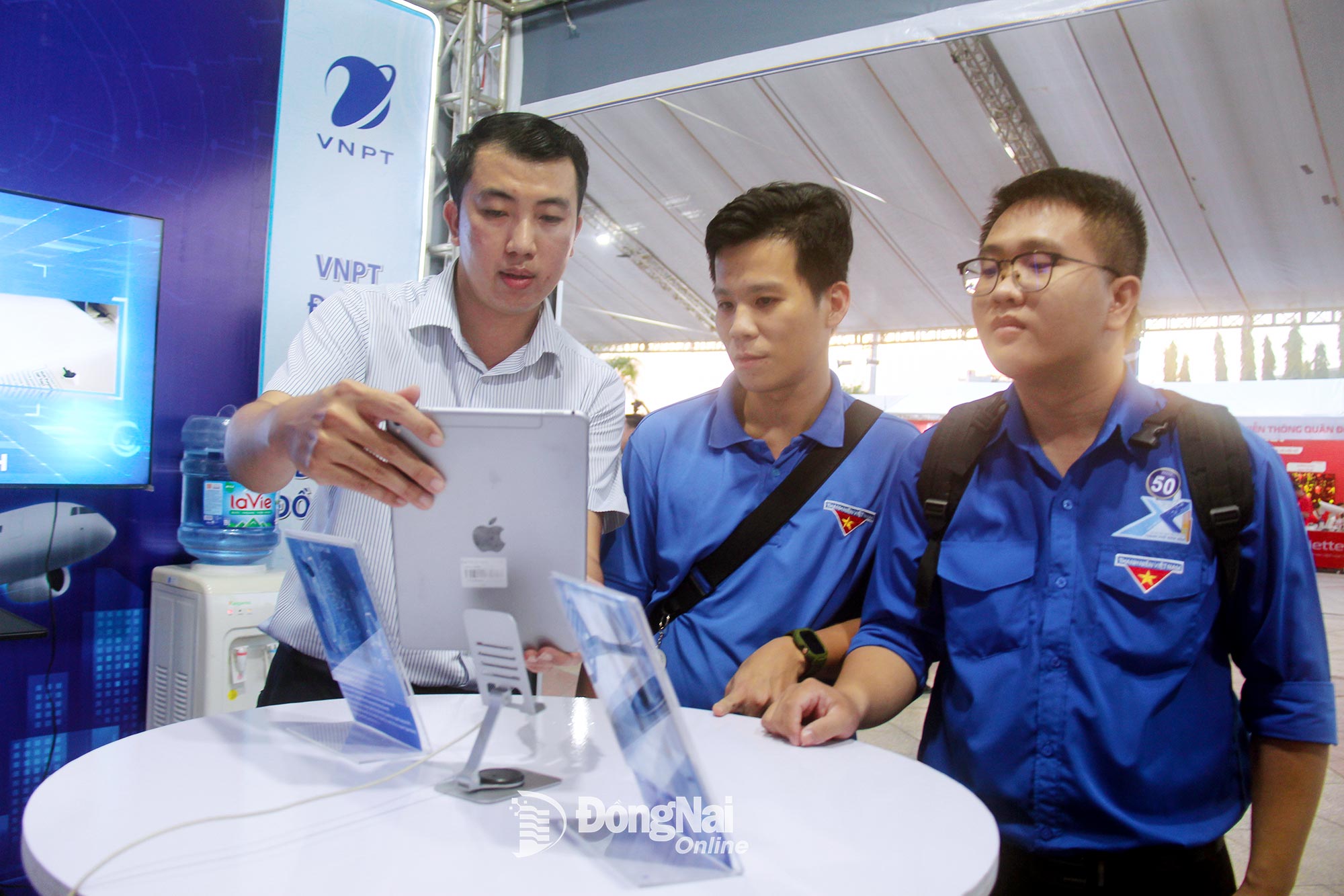 | Người dân tham quan các gian hàng trải nghiệm công nghệ số tại một sự kiện về chuyển đổi số ở phường Tam Hiệp. Ảnh: Hải Quân |