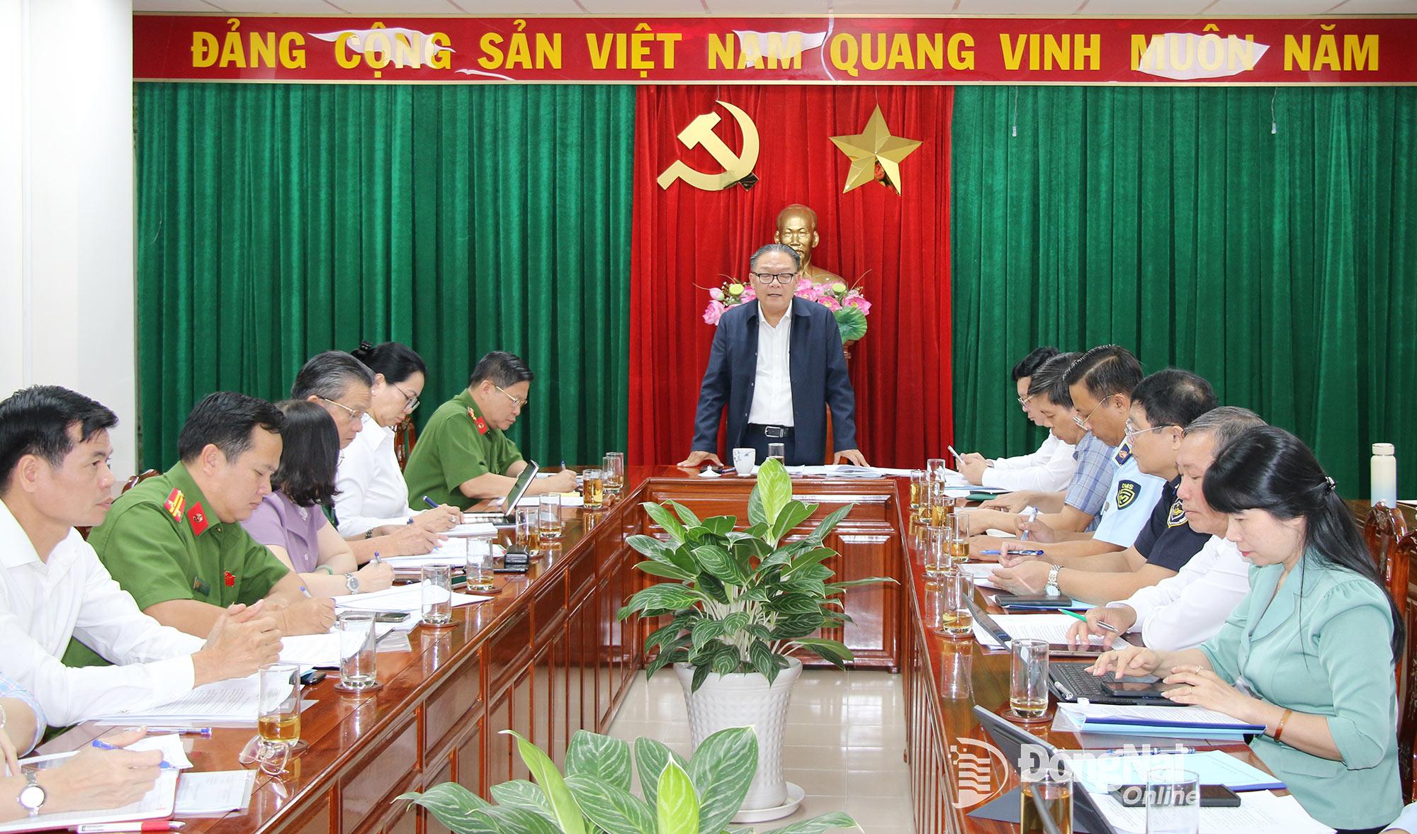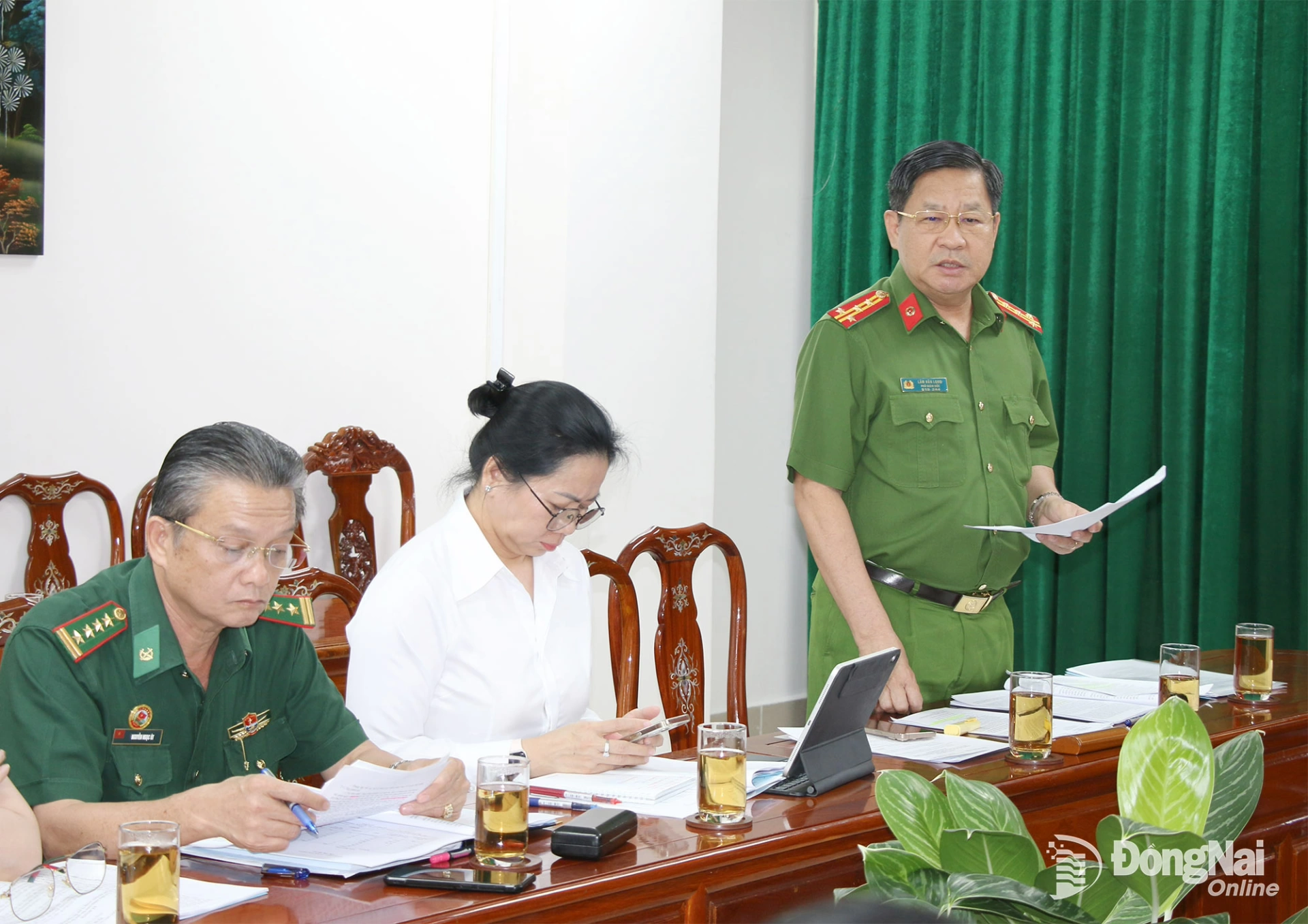 | Đại tá Lâm Văn Long, Phó Giám đốc Công an tỉnh Đồng Nai phát biểu tại cuộc họp. Ảnh: Hải Quân |