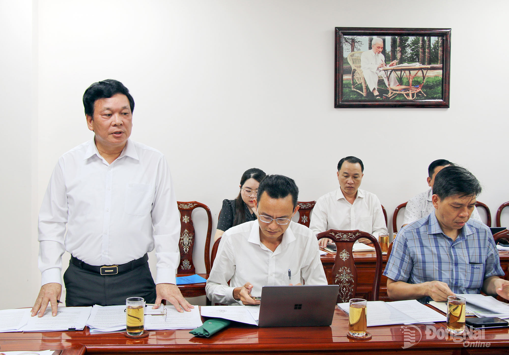 | Tỉnh ủy viên, Giám đốc Sở Công Thương tỉnh Đồng Nai Vũ Ngọc Long phát biểu tại cuộc họp. Ảnh: Hải Quân |