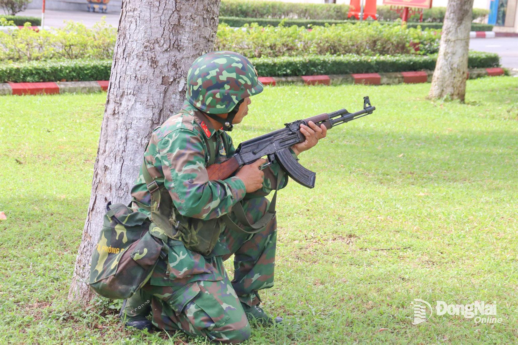 | Bộ đội Lữ đoàn 22 thực hành bài kiểm tra báo động phân đội trực chiến bộ binh. Ảnh: Nguyệt Hà |